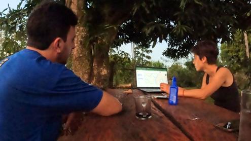 With student Ana Carolina Figueiredo, who will analyze the vocal repertoire of jaguars and pumas through vocalizations recorded bycameratraps.