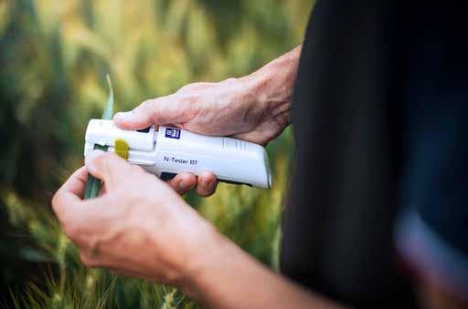 Han förklarar att Yara N Tester bara mäter kvävehalten i de blad man mäter på. I ett kraftigt bestånd med låg kväve halt innebär det en högre rekommenderad kvävegiva för att få optimal skörd och proteinhalt. I dagsläget finns bara rekom mendationer för Yara N Tester i tidig stråskjutning, stadium 31–32, men det finns ett behov av att mäta senare för att korrigera till rätt proteinnivå med senare givor.