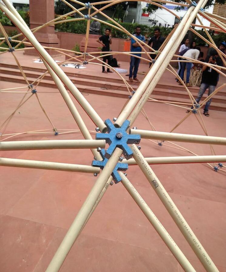 This workshop that was conducted at the Zonal NASA Convention of Zone-3 in September, 2019. We created smaller deployable structures in groups to understand the working of the systems after which we created a deployable dome structure. It could be folded down to as small as an umbrealla rack and open up to a diameter of 3 meters. The members were made of pvc and the joints were blocks of laser cut mdf.