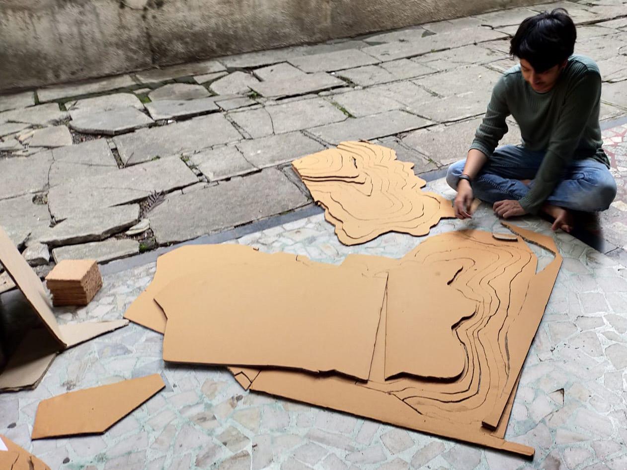 Me and my colleagues worked with Hues Architects, Pune to make a site model for their ongoing resort project at Bhor in August, 2022. We used corrugated sheets as the suitable material for the contours and oasis blocks and pins to show the vegetation. The contours were cut in ring sections instead of the conventional method of cutting in slabs. This method resulted in saving more than 70% of the material. The void was filled with paper balls and studs as support.