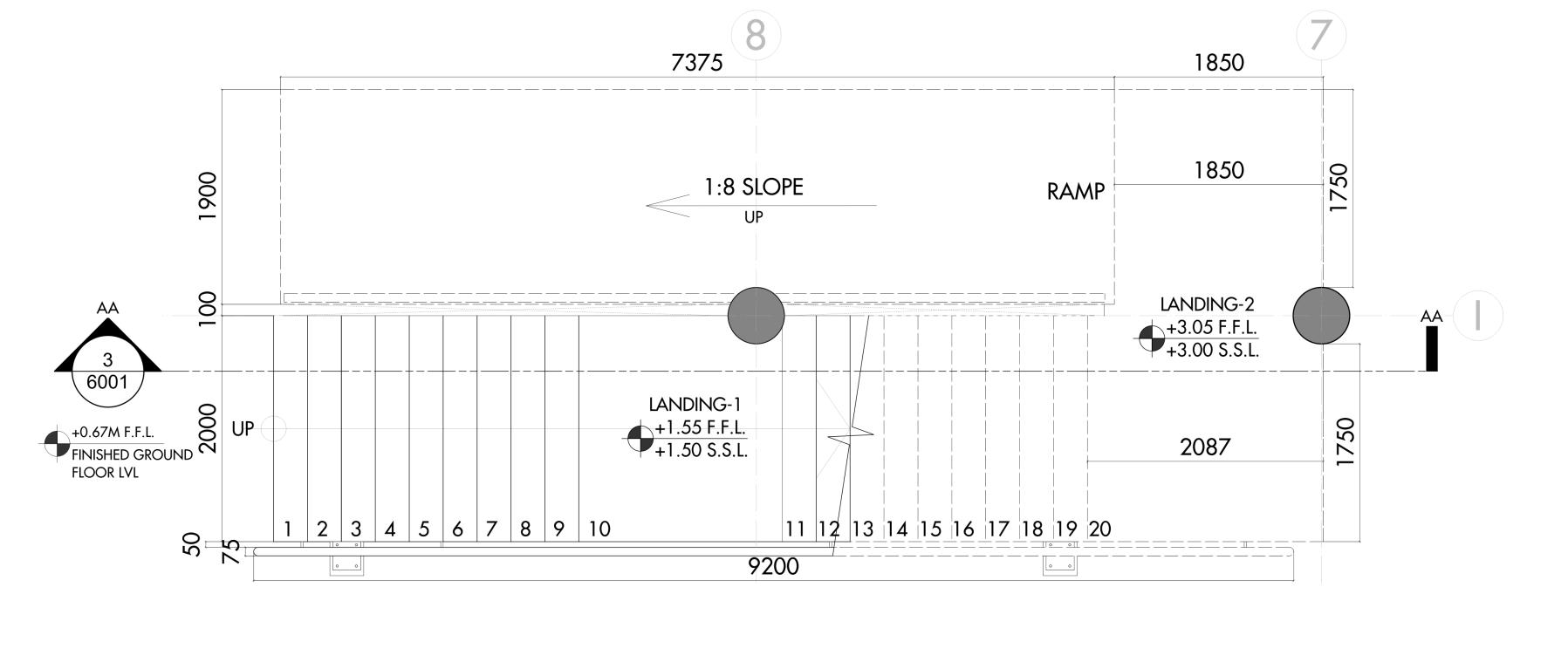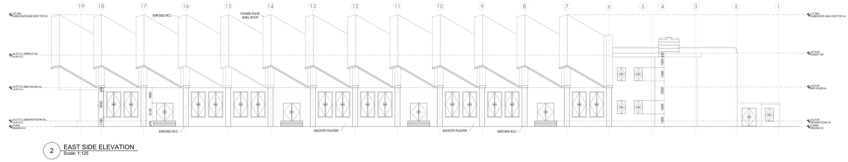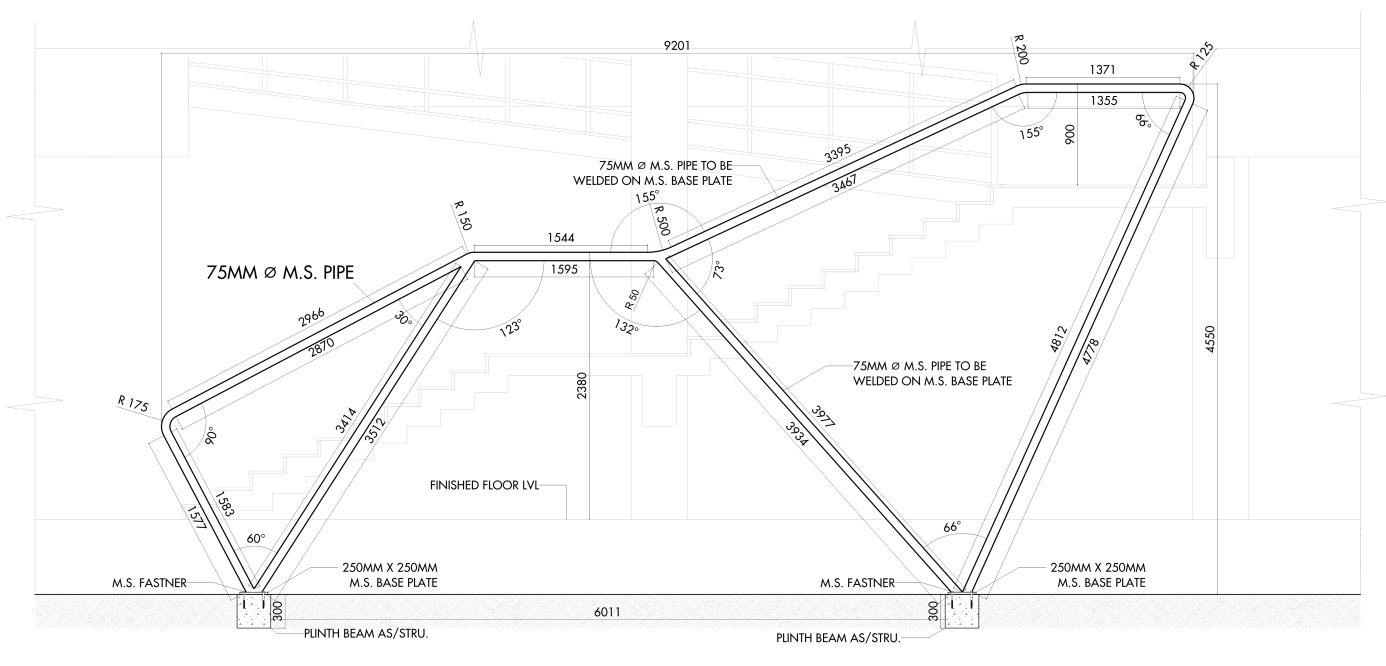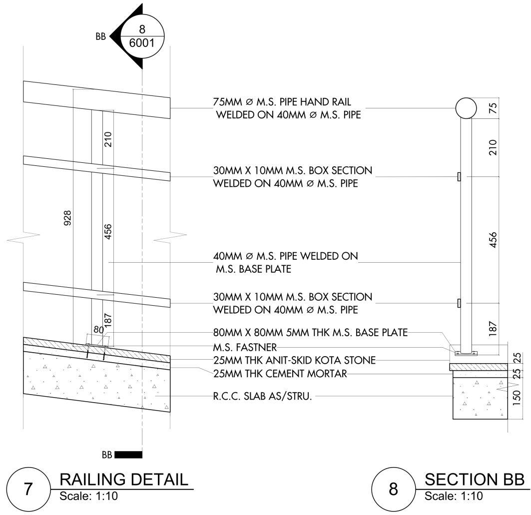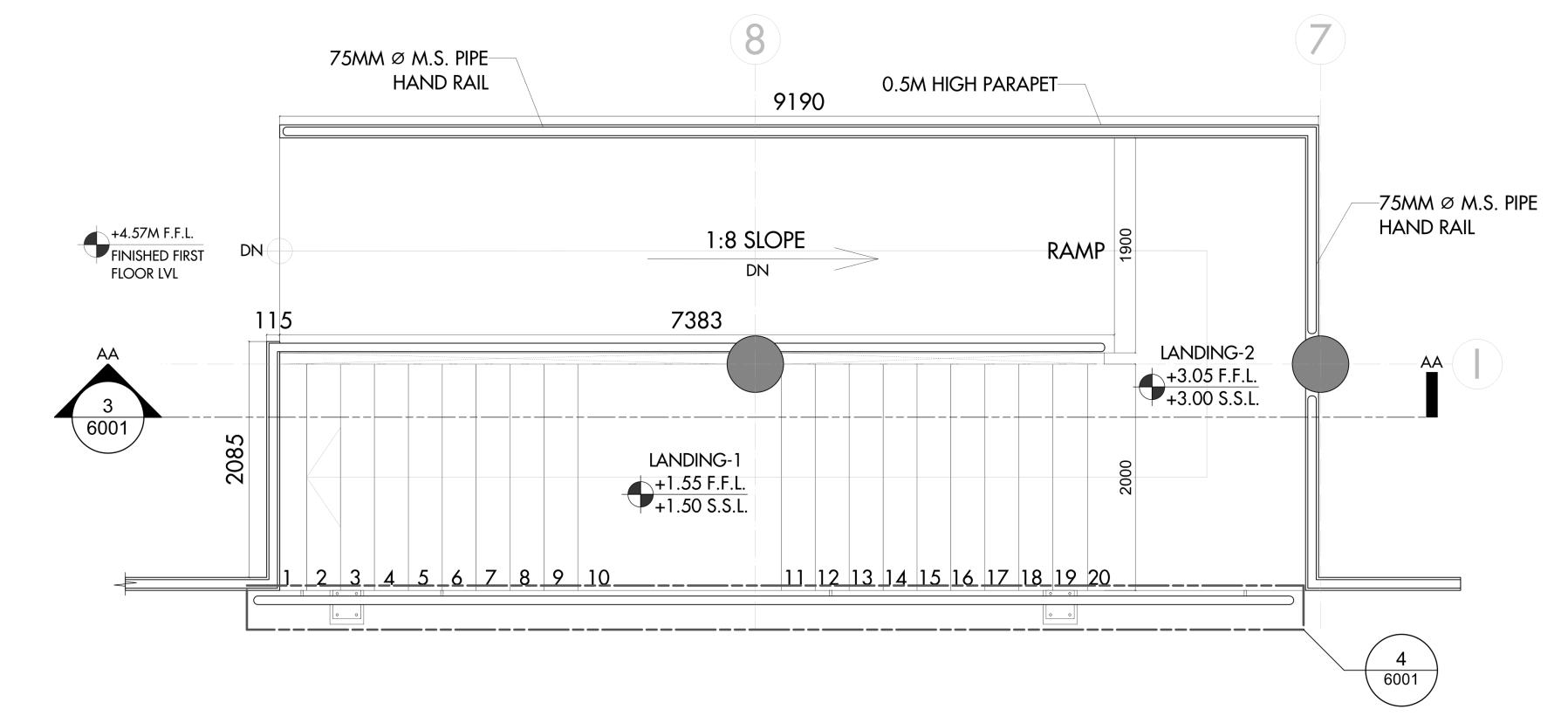 It covers layout plans with accurate dimensions, material specications, structural systems, wall sections, door-window schedules, and joinery details. Special attention is given to site-sensitive elements like tree preservation, natural ventilation, and integration of open and built spaces.