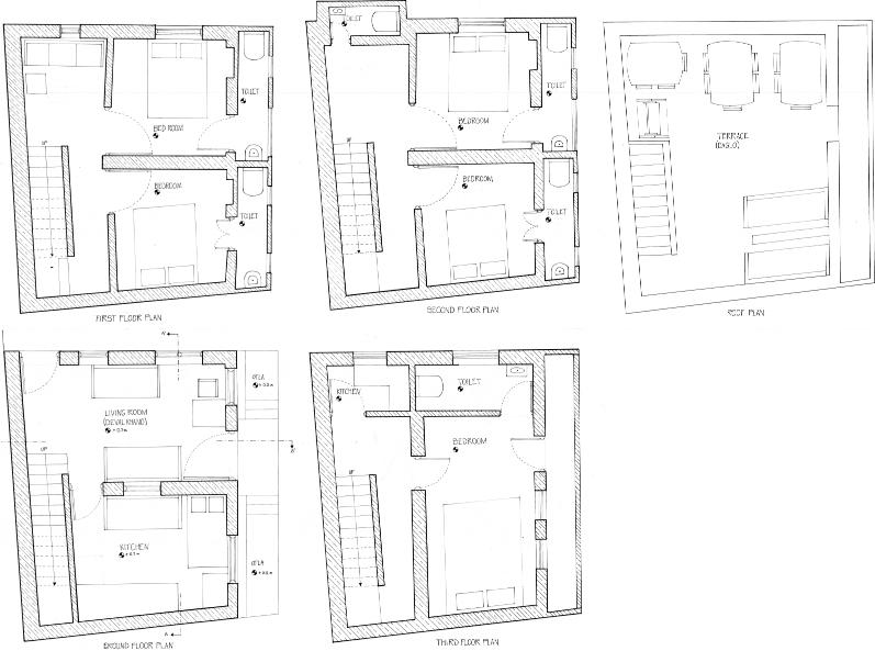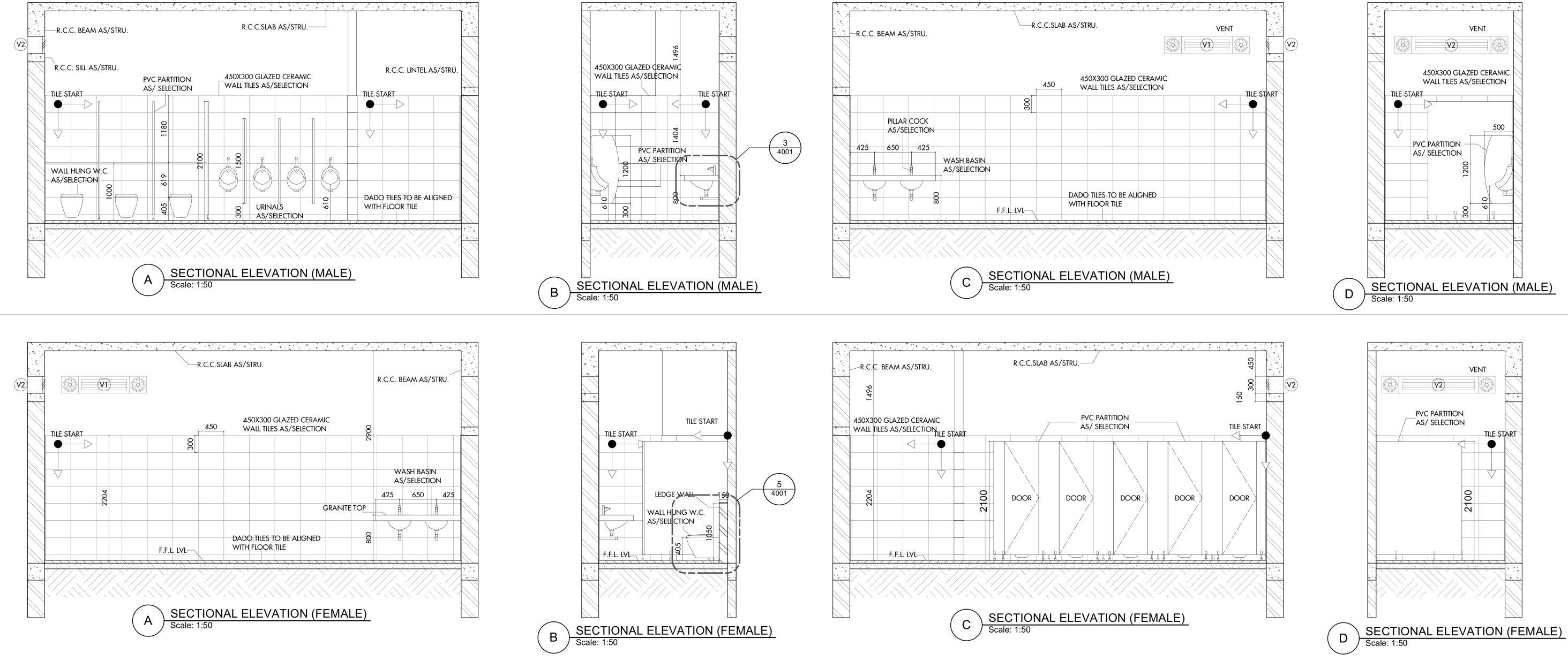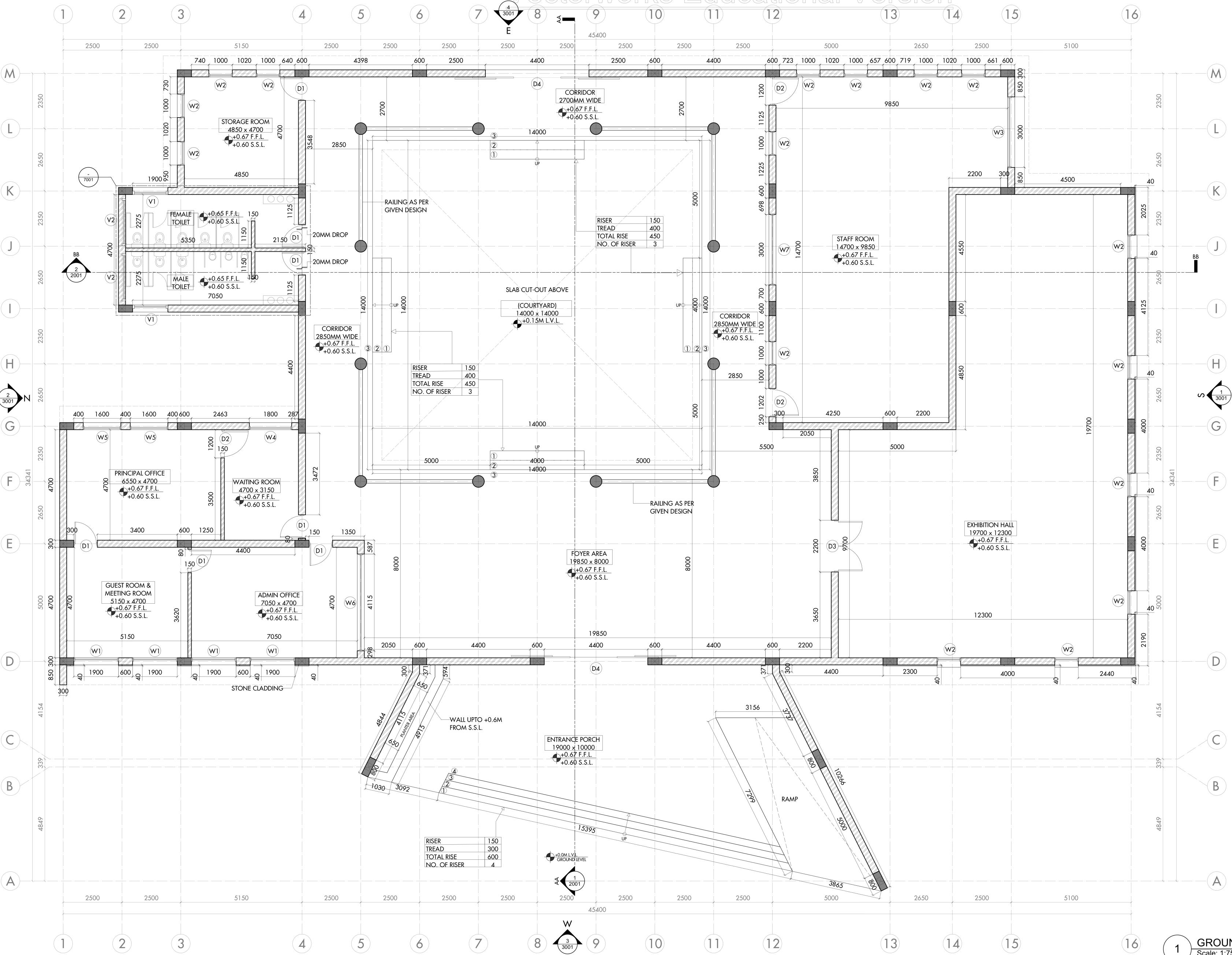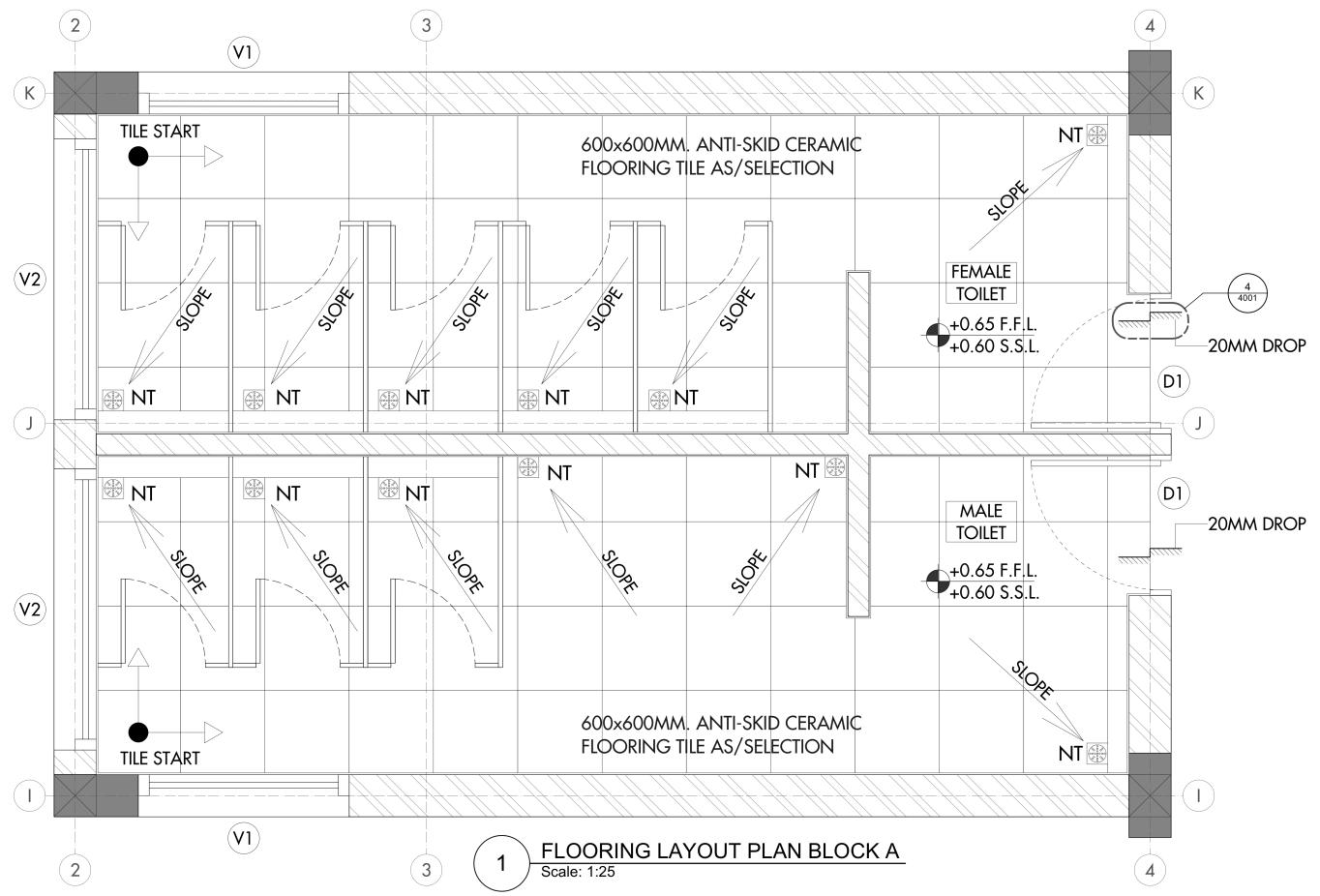 It covers layout plans with accurate dimensions, material specications, structural systems, wall sections, door-window schedules, and joinery details. Special attention is given to site-sensitive elements like tree preservation, natural ventilation, and integration of open and built spaces.