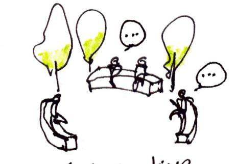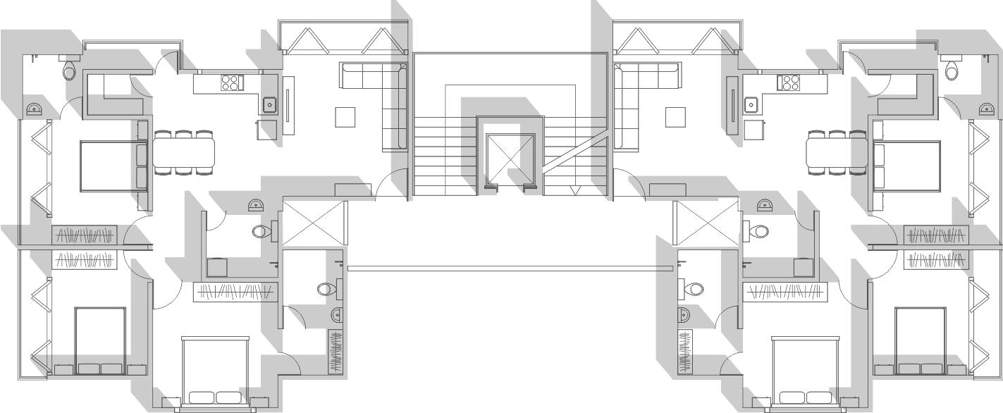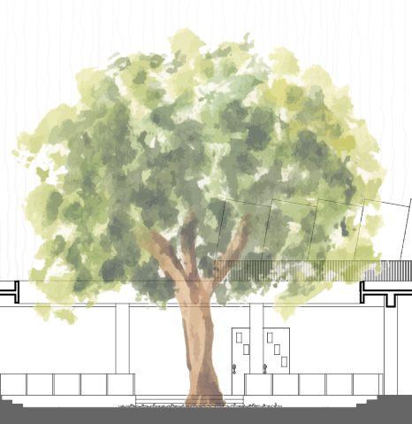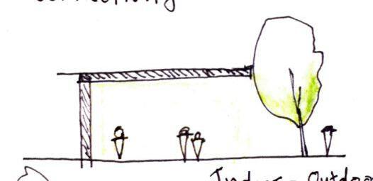 The form was developed to maintain visual connectivity throughout the space as well as to maintain wind ow. Shaded outdoor spaces were created for human exposure