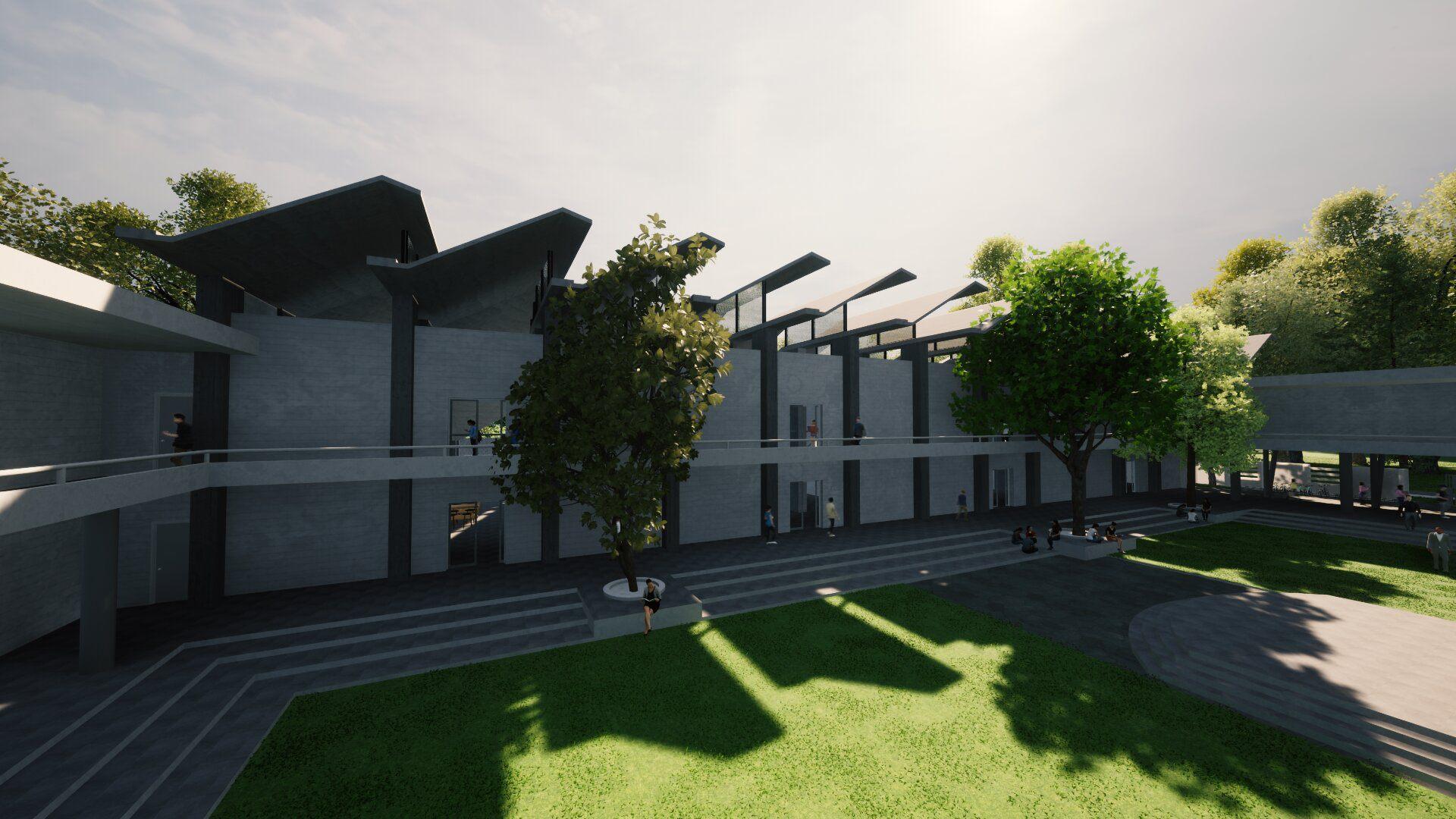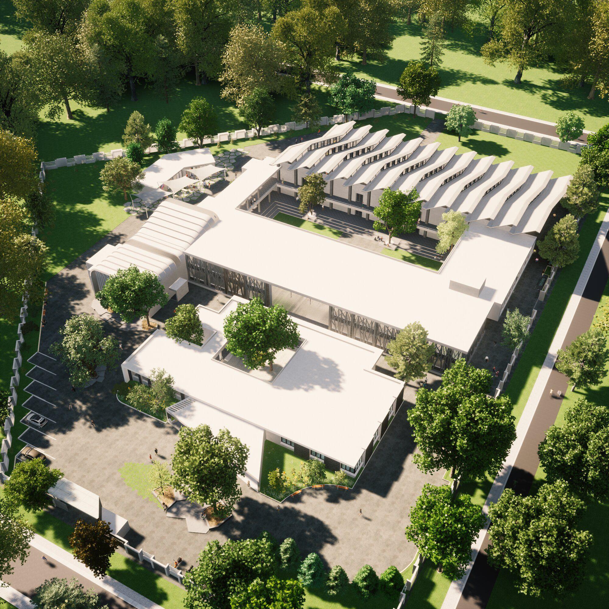 The proposed Design Institute at IISc Bangalore aims to integrate innovative educational spaces with the campus's natural environment. Spanning 4 acres, the institution features an architectural design that harmonizes with existing trees and enhances connections to nature.