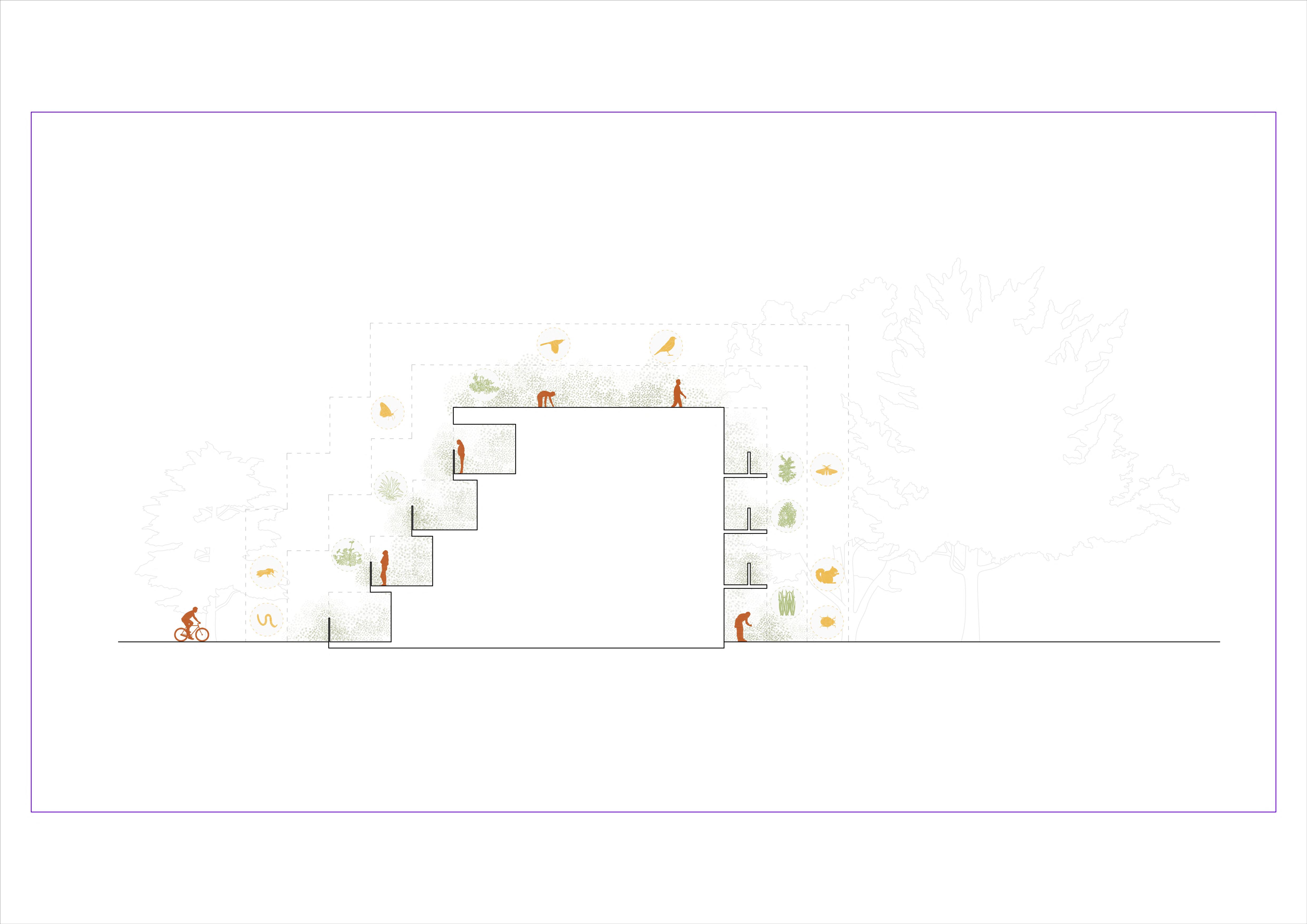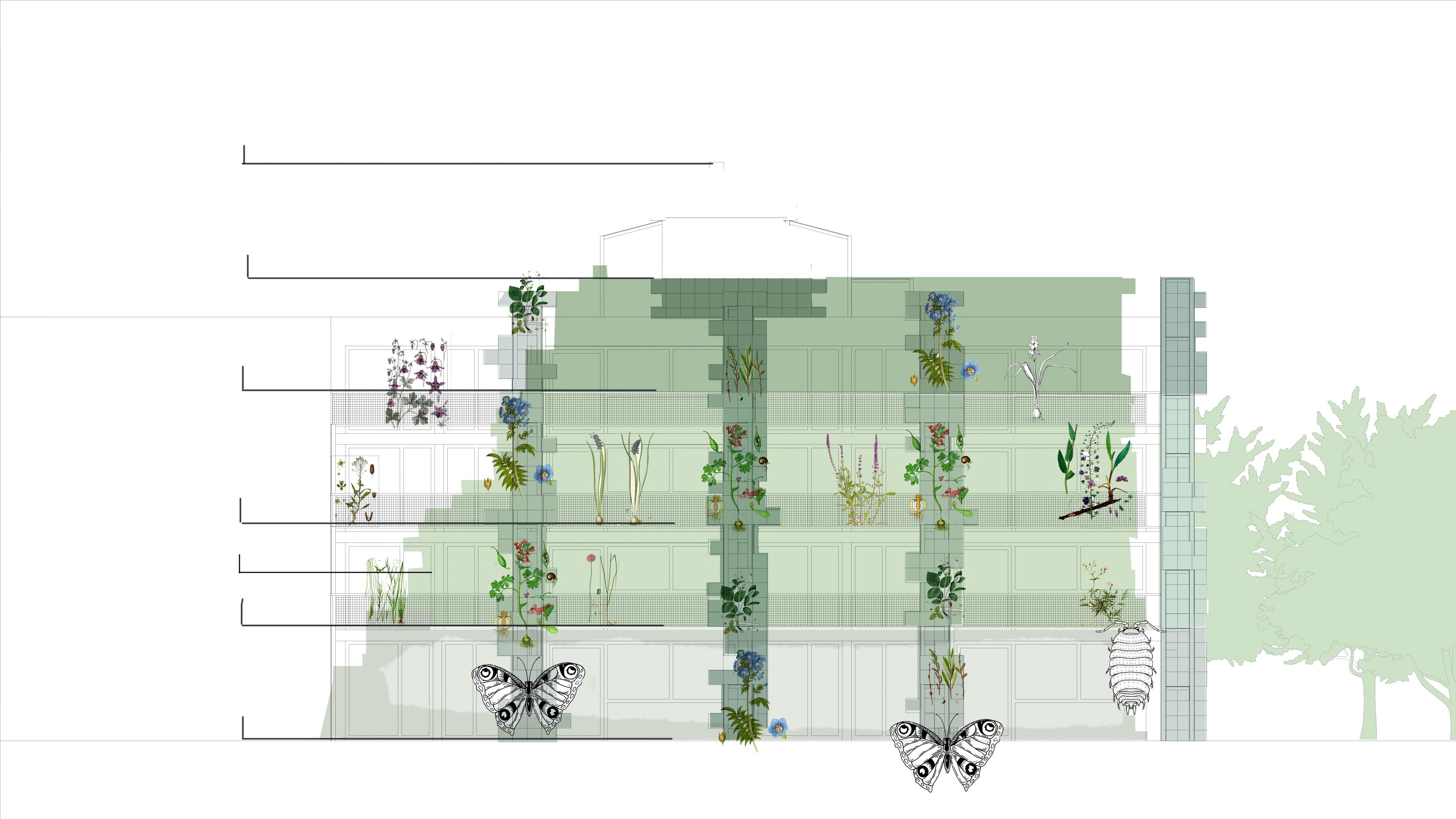 Take advantage of the south façade to implement a more complex environment, biotically and abiotically, isolated from the human impact