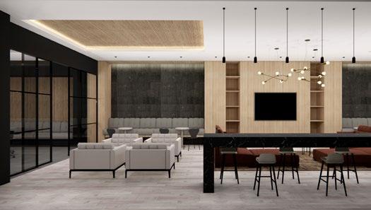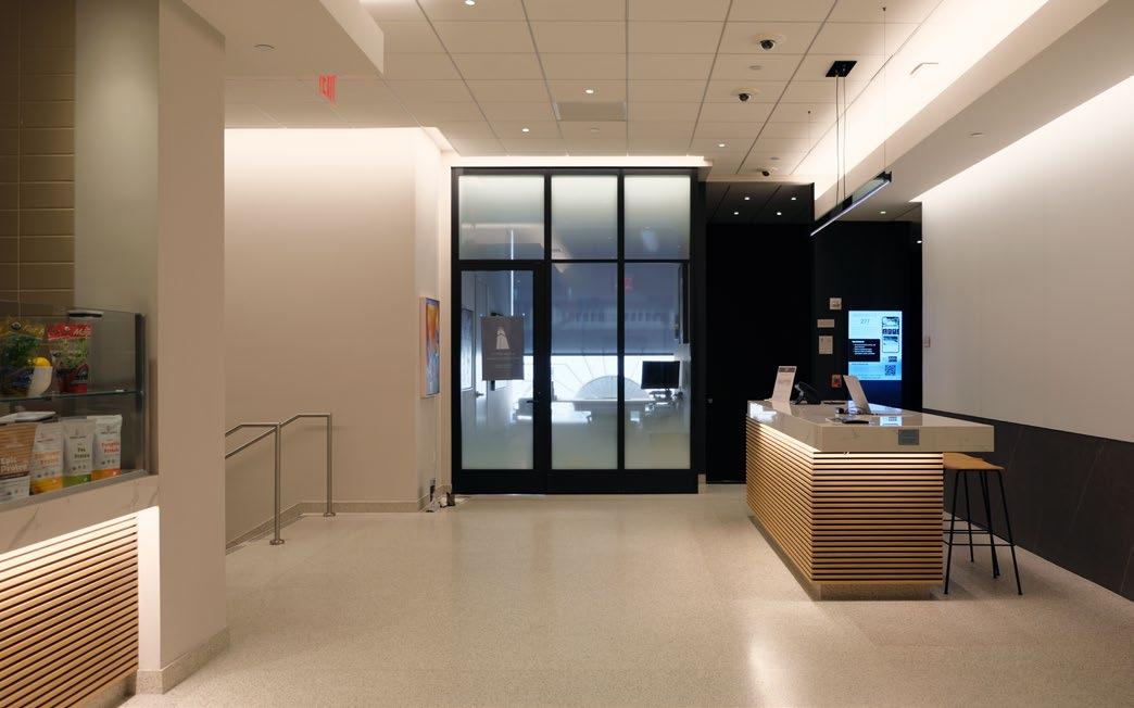The renovated amenity space is designed to offer a comprehensive range of services that cater to the diverse needs of the staff in the office building The space has been designed to provide a seamless transition between different functional areas, ensuring a sense of cohesion and continuity throughout the space.