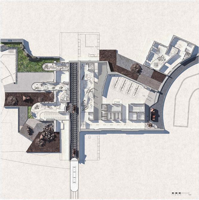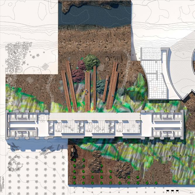 In response to the environmental and political crisis in the suburban area of Antananarivo, Madagascar, this project is an agricultural and cultural center that helps to fight against deforestation and enforce sustainable farming practices. The design suggests a gentle intervention of building practice by incorporating the existing landscape, taking advantage of local typology. The walkway starts from the sloping ramp, sneaks into the interior, and continues to the experimental farming downhill. Besides, the fluid sequence invites the surroundings to access the service at any point and collaborate in the advancement of suburban society. We envision this project begins to weave a seamless network between people with different social statuses, breaking the traditional boundaries of public services.