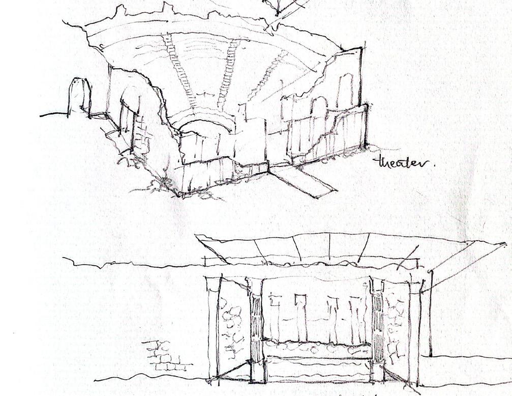 Right: I. Sketches of masterplan II. Analytic design strategies of the masterplan.