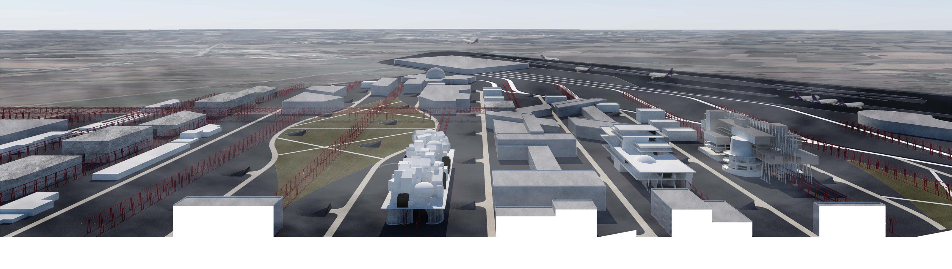 With the ambition of activating a current NASA testing base and former nuclear reactor site, this project is designed for a research university in Sandusky Ohio experiments with simulations and fabricated environments. Although the public imagery of NASA is of rocket launches and extravagant space travel, there is an incredible amount of infrastructure behind these launches that rely on the replication of the space environment. While this site already hosts multiple testing facilities, the southern portion of the NASA base contains a field of decommissioned nuclear bunkers. These bunkers are arrayed along a dominant grain, and it is in this field that we have located our campus.