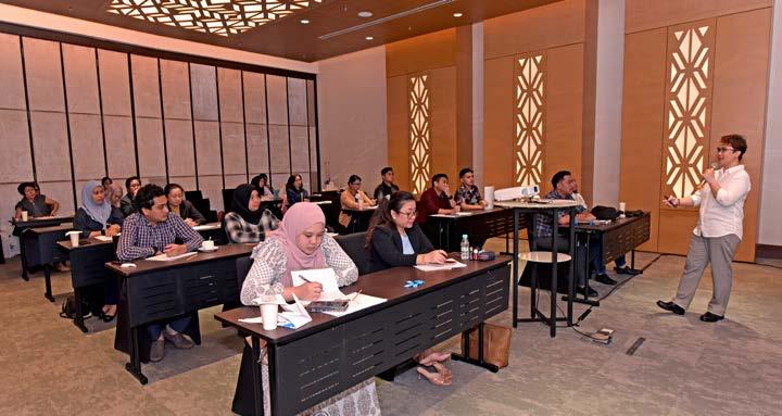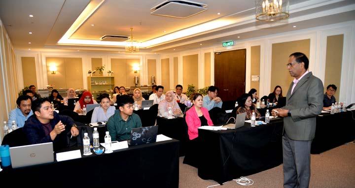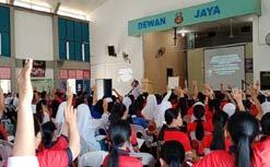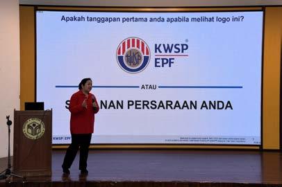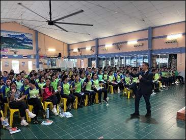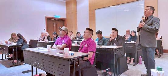 Encik Salim Japaran dari Bahagian Pembangunan Pendidikan menyampaikan taklimat bantuan pendidikan Kumpulan Yayasan Sabah.
