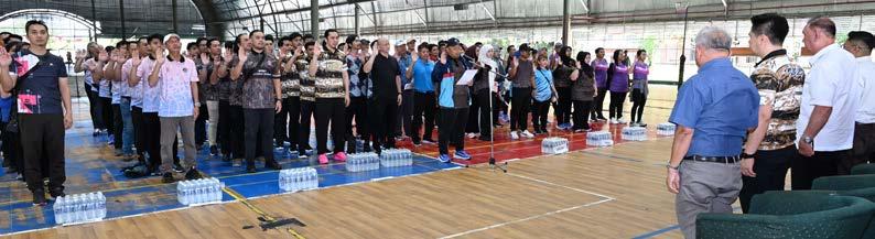 Dato’ Sri Haji Gulamhaidar menyampaikan amanat kepada kontinjen Kumpulan Yayasan Sabah.