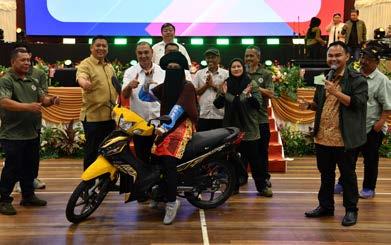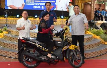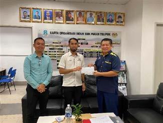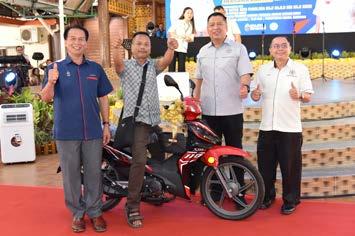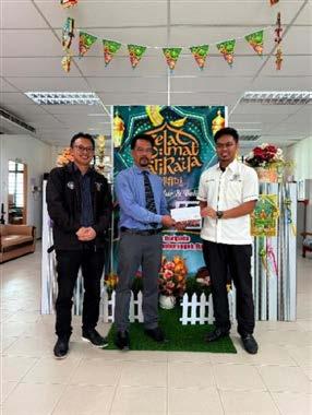 Dato’ Sri Haji Gulamhaidar menyampaikan hadiah kepada naib johan pertandingan mencipta slogan, Encik Joefairul Johari dari Bahagian Teknologi Maklumat dan Komunikasi serta Keselamatan dan Kesihatan Pekerjaan, dengan slogannya ‘Bersatu Gagah, Bersukan Megah’.