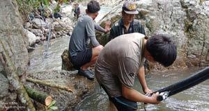 Gotong-royong membaikpulih paip graviti oleh penduduk kampung turut disertai oleh