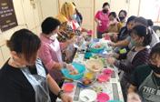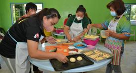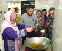 Jurulatih kursus, Encik Asril bin Sudirman (baju kuning) dari Syarikat Hajah Yanong Industri Sdn. Bhd. sedang membimbing proses pembuatan bebola daging di Kg. Minangkob, Tamparuli yang dihadiri oleh seramai 15 orang peserta pada 20 Julai 2022.