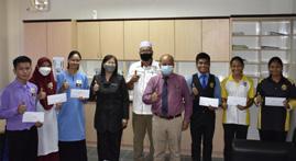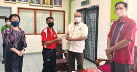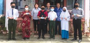 Encik Hanafiah (tiga dari kiri) menyampaikan sumbangan Kumpulan Yayasan Sabah.