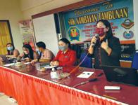 Pengurus Kanan, Bahagian Pembangunan Pendidikan, Puan Irene Vung menerangkan peluang-peluang mendapatkan tajaan pendidikan Kumpulan Yayasan Sabah.