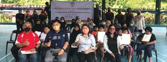 Puan Linda (duduk, dua dari kanan) bersama para petugas dari Tabung Darah QEH 1 dan 40 peserta program Kesedaran Talasemia dan Kempen Derma Darah di Kg. Kobuni, Inanam pada 17 Julai 2022.