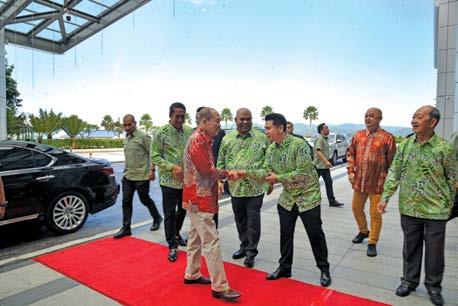 Dato’ Sri Haji Gulamhaidar (kanan) menyambut ketibaan Datuk Dr. Haji Arifin, wakil kepada Ketua Menteri Sabah.