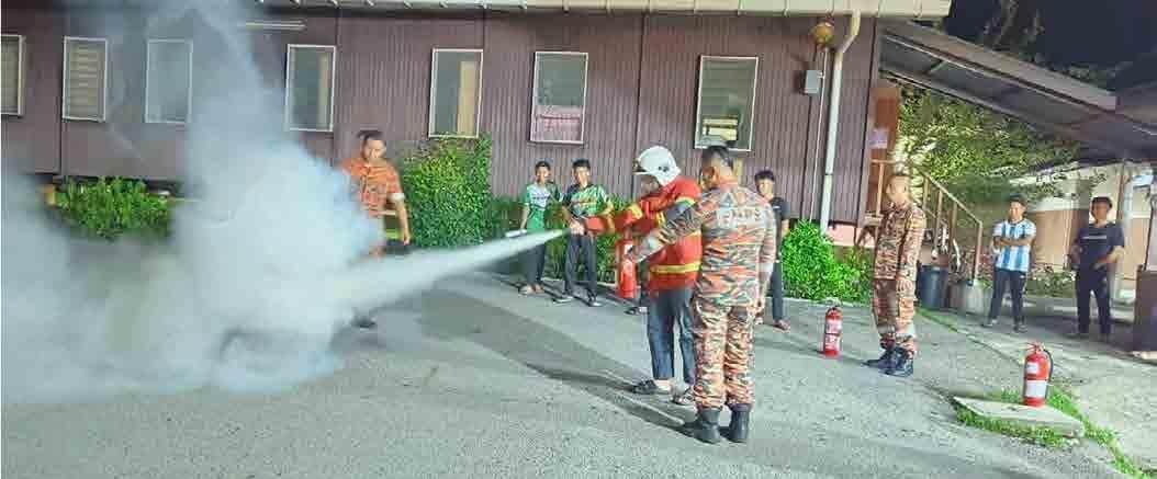 Demonstrasi memadamkan api kebakaran dikendalikan oleh anggota Bomba dan Penyelamat. Penghuni asrama turut menjalani latihan memadamkan api kebakaran.