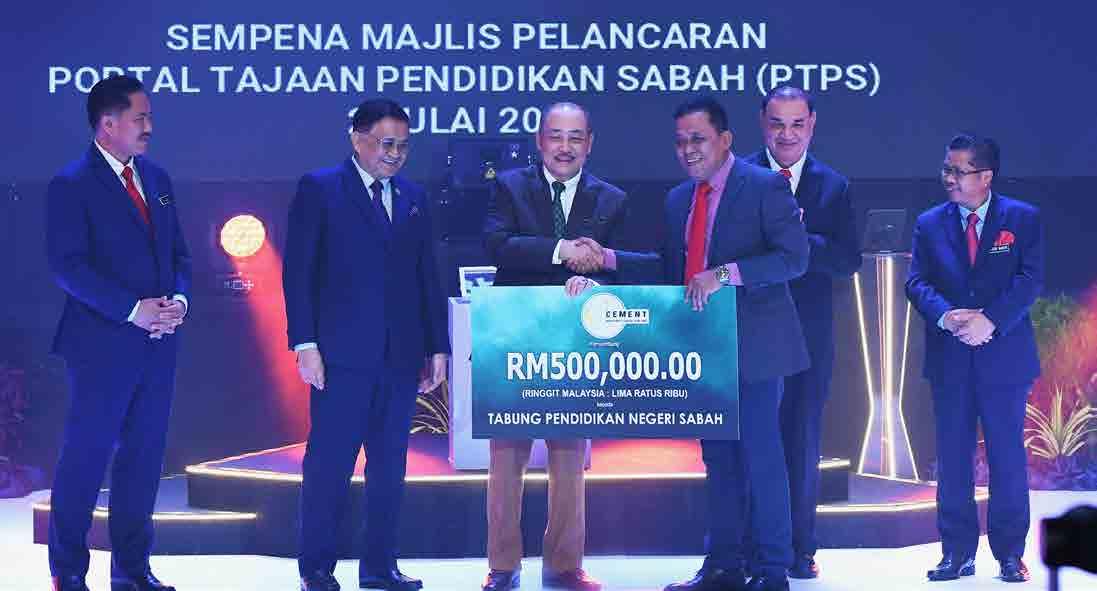 Datuk Japlin Akim, Pengerusi Cement Industries (Sabah) Sdn. Bhd. menyampaikan sumbangan sebanyak RM500,000.00.