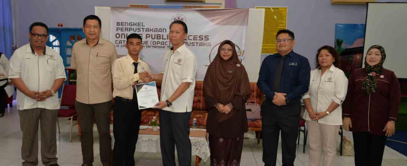 Pengetua SMK Tenom, Encik Malek Mohd. Shafdar bin Gulam Hassan (empat dari kanan) menerima cek BMYS daripada Encik Hamidin Suin (empat dari kiri).