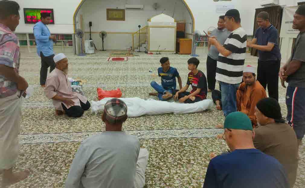 Puan Siti Sheriffah (tiga, kanan) menyampaikan sumbangan kepada Pengerusi Masjid Al-Quddus