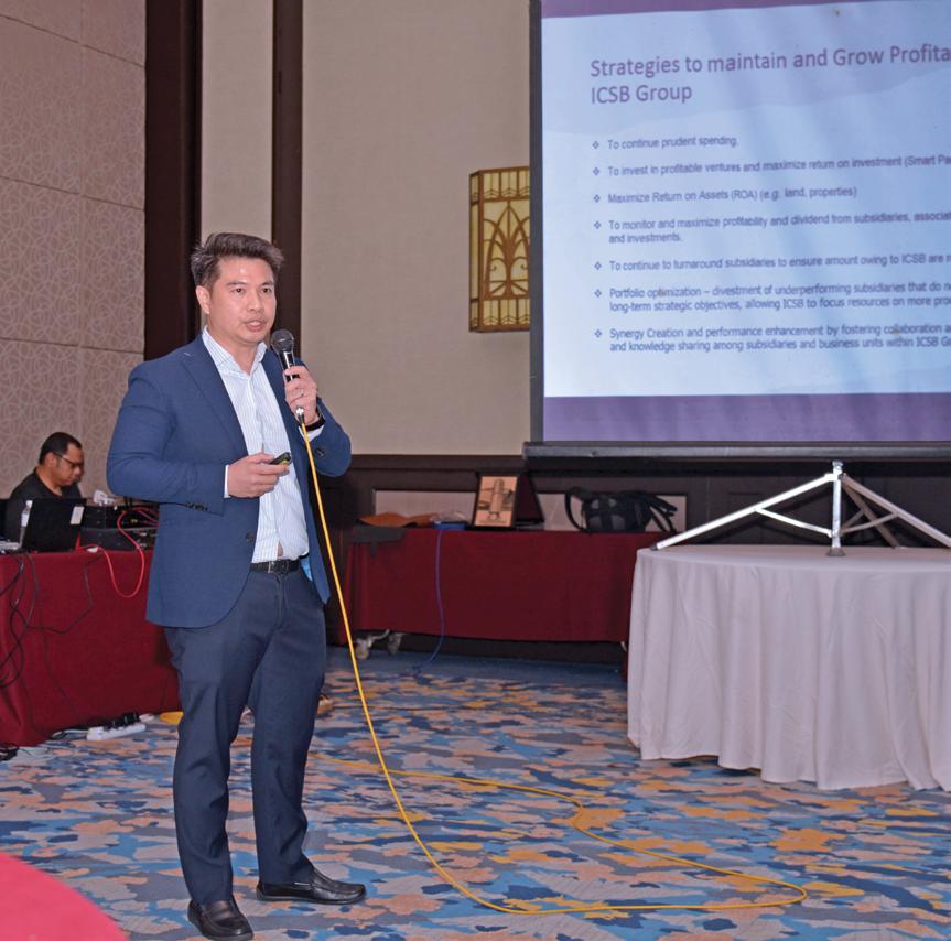 Group Manager of Accounts and Financial Services (YS/ICSB), Encik Joshua Ho, presenting an overview of the financial status of both Yayasan Sabah and ICSB.