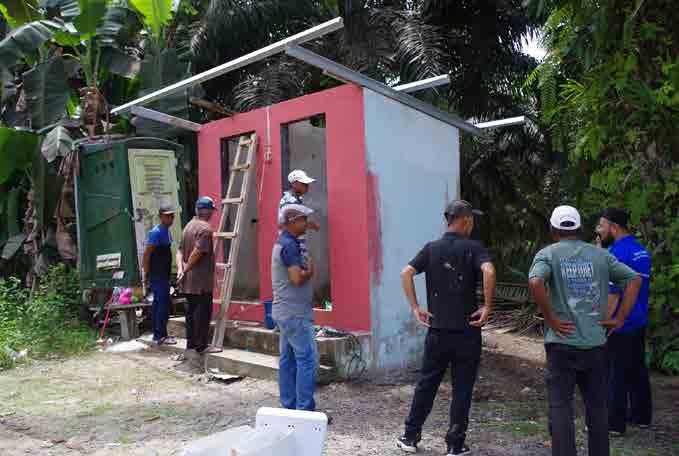Kg. Mentulud, Tuan Abd. Sani Haji Mokjin (kiri) sambil disaksikan oleh