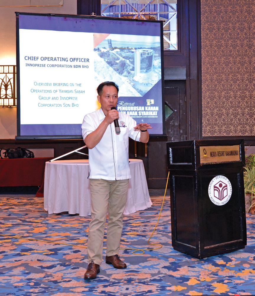 Chief Operating Officer of ICSB, Encik Douglas Joinol provides participants with an overview of ISCB’s operations within the Yayasan Sabah Group.