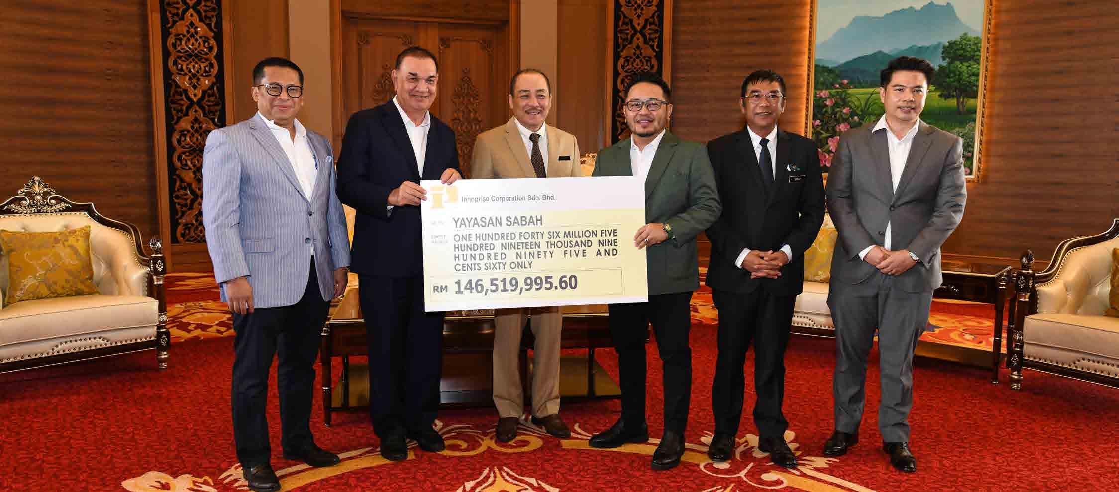 Kumpulan Yayasan Sabah menyerahkan pembayaran dividen kepada Kerajaan Negeri Sabah bagi tahun berakhir 2023 pada 7 Ogos 2024 di Menara Kinabalu. Penyampaian dividen ini mencerminkan komitmen Kumpulan Yayasan Sabah dalam menyokong pembangunan dan kesejahteraan negeri Sabah. Innoprise Corporation Sdn. Bhd. (ICSB) membayar RM3.5 juta dividen kepada Kerajaan Negeri Sabah dan RM147 juta kepada Yayasan Sabah.