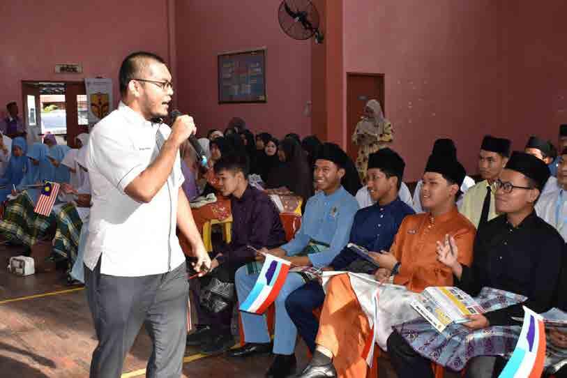 Encik Fazreen menyampaikan taklimat motivasi kepada pelajar tingkatan 5 dan 6.