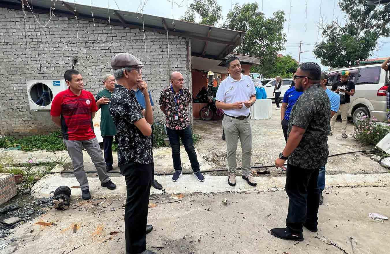 Dato’ Sri Haji Gulamhaidar menyampaikan sumbangan bakul makanan kepada warga Kumpulan Yayasan Sabah yang terlibat bencana