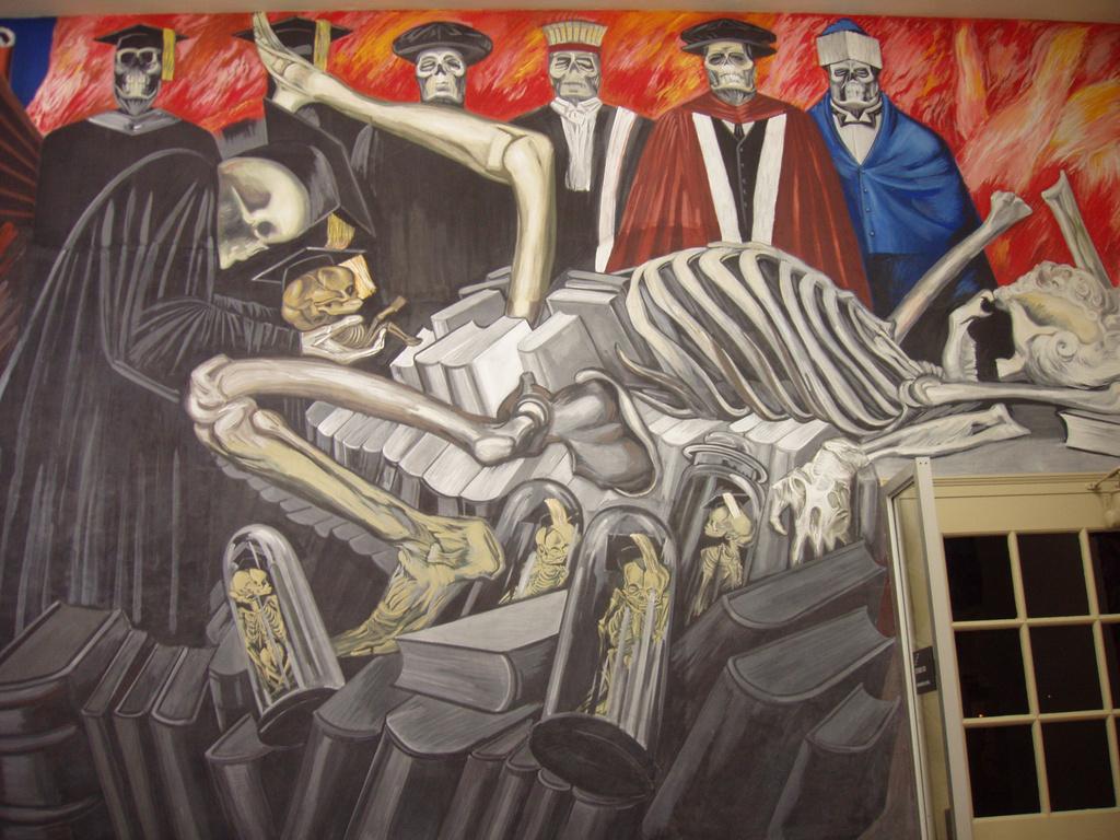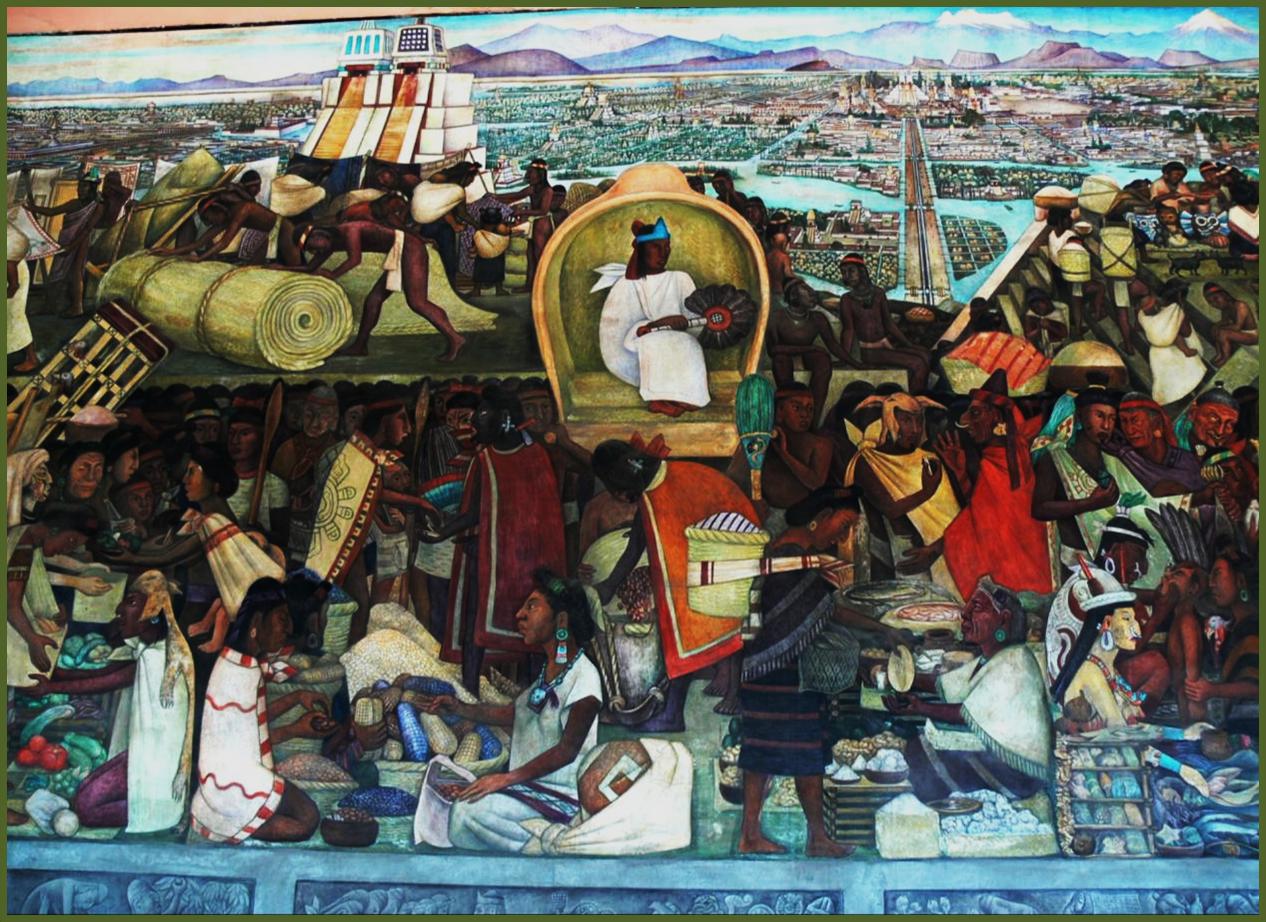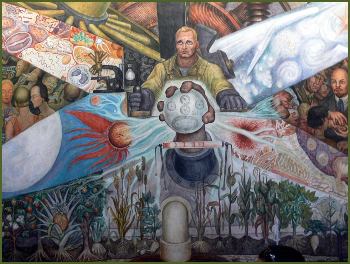 En este mural por ejemplo, el tema puede ser “los ciclos de la vida” o también puede ser “el poder sobre la vida”.