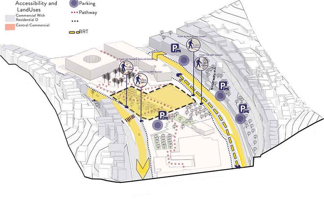 The project aims to develop the downtown area «Quraysh Street, King Talal Street and Al Hashemi Street» through transitoriented development (TOD) and strategies of sustainable urban mobility planning (SUMP]. The site area is vital since it connects the Jordan museum bus station and the old Raghadan bus station. As well as encouraging citizens to use sustainable transport.