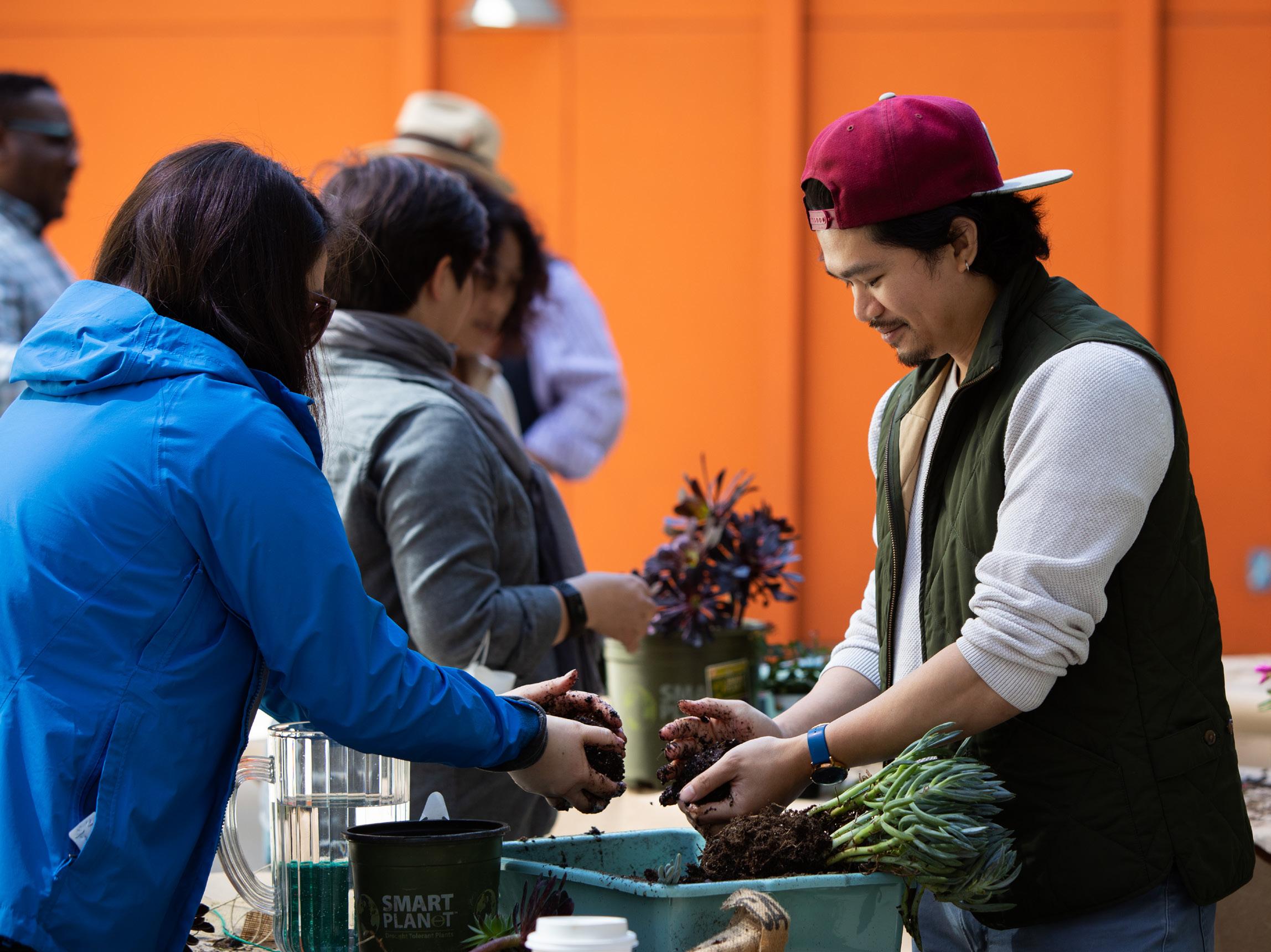 Our partnership with GitHub has been a cornerstone of our commitment to innovation and inclusivity in the arts. Together, we embarked on a journey to create spaces where technology and creativity converge, breaking down traditional boundaries and inviting new narratives to unfold. With GitHub’s support YBCA commissioned Let’s Build from Here, a site-specific interactive mural created by Oakland-based artist and activist Innosanto Nagara. The large-scale mural, which spans YBCA’s east gardens exterior facade, highlights the power of collaborative future-building and celebrates the Bay Area’s kaleidoscope of perspectives—featuring the phrase “Let’s build from here” in Tagalog, Chinese, Spanish, and English. An augmented reality experience— made using open-sources tools hosted on GitHub—was created to simulate the effect of the artwork.