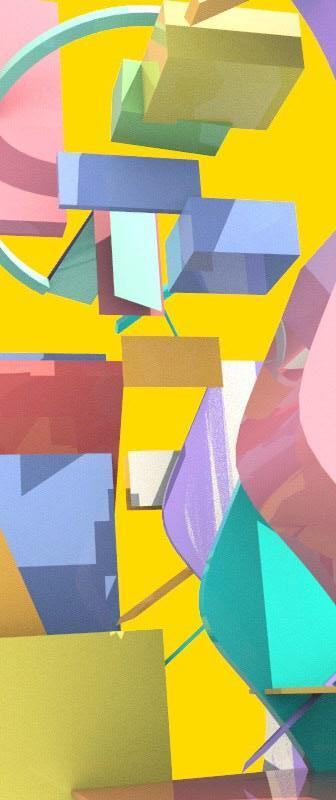 In contrast to the soft surface of the kite, a sharp hollow triangular ring is morphed into the surface. By virtue of the wavy surface, the shape of the triangle becomes dutile. The color gradient from orange to yellow is harmoniously displayed on the structure.