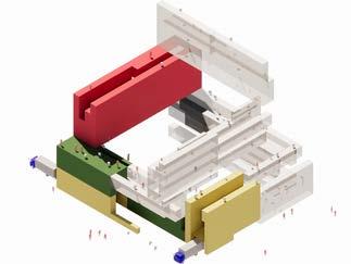 Projection lines traced between the segments described before frame the forms of the vertical chases that extend through the building.