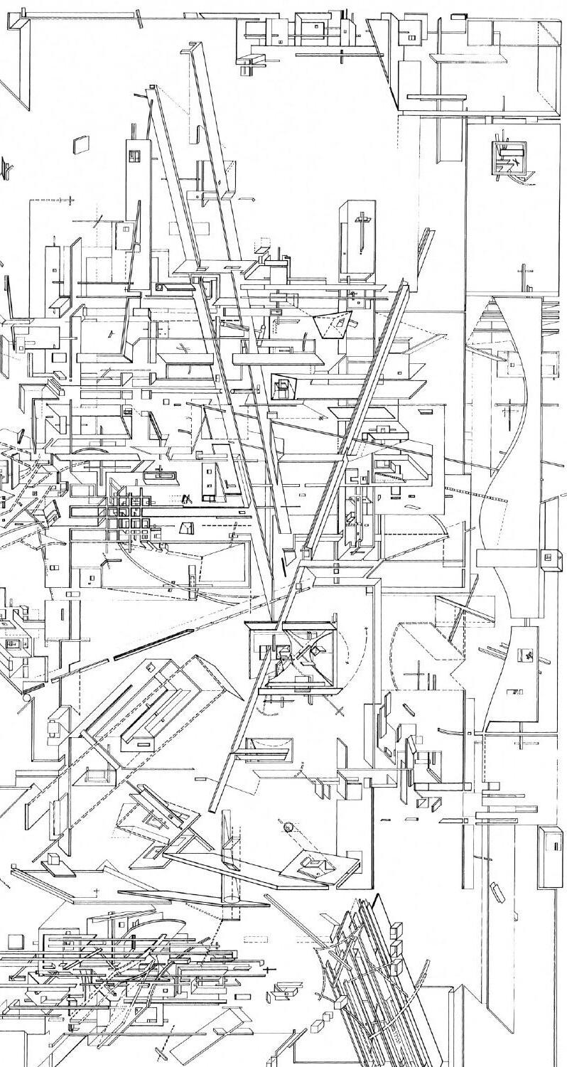 The final stage is a translation from two-dimensional drawings to three- dimensional model. Transforming the abstractions of lines and spaces on the flat paper surface to the construction of characters that shape space is a step into architecture–although the critical dialogue of abstraction is maintained and intensified.