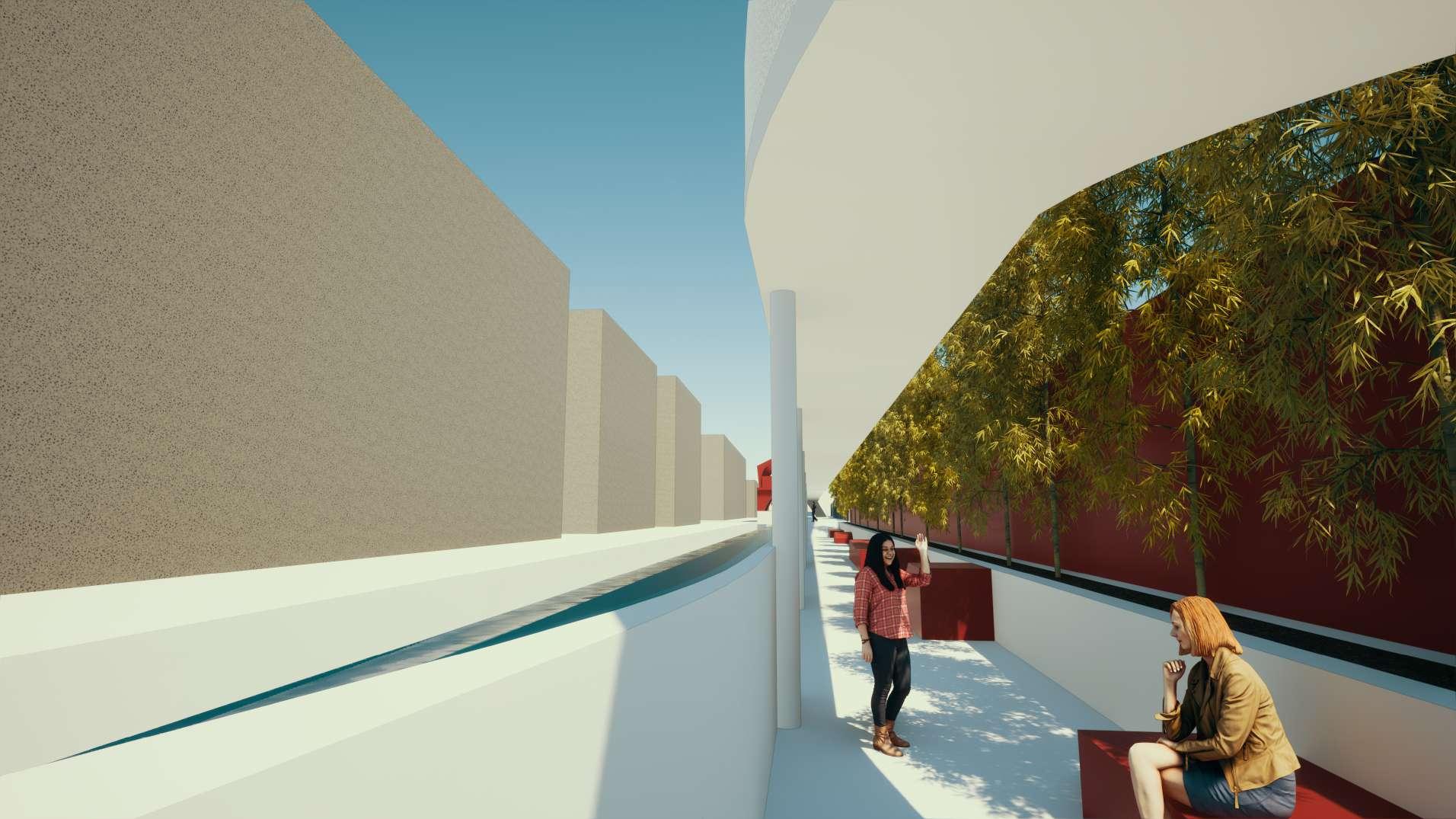 isolated walking experience with below water and overpass walkway