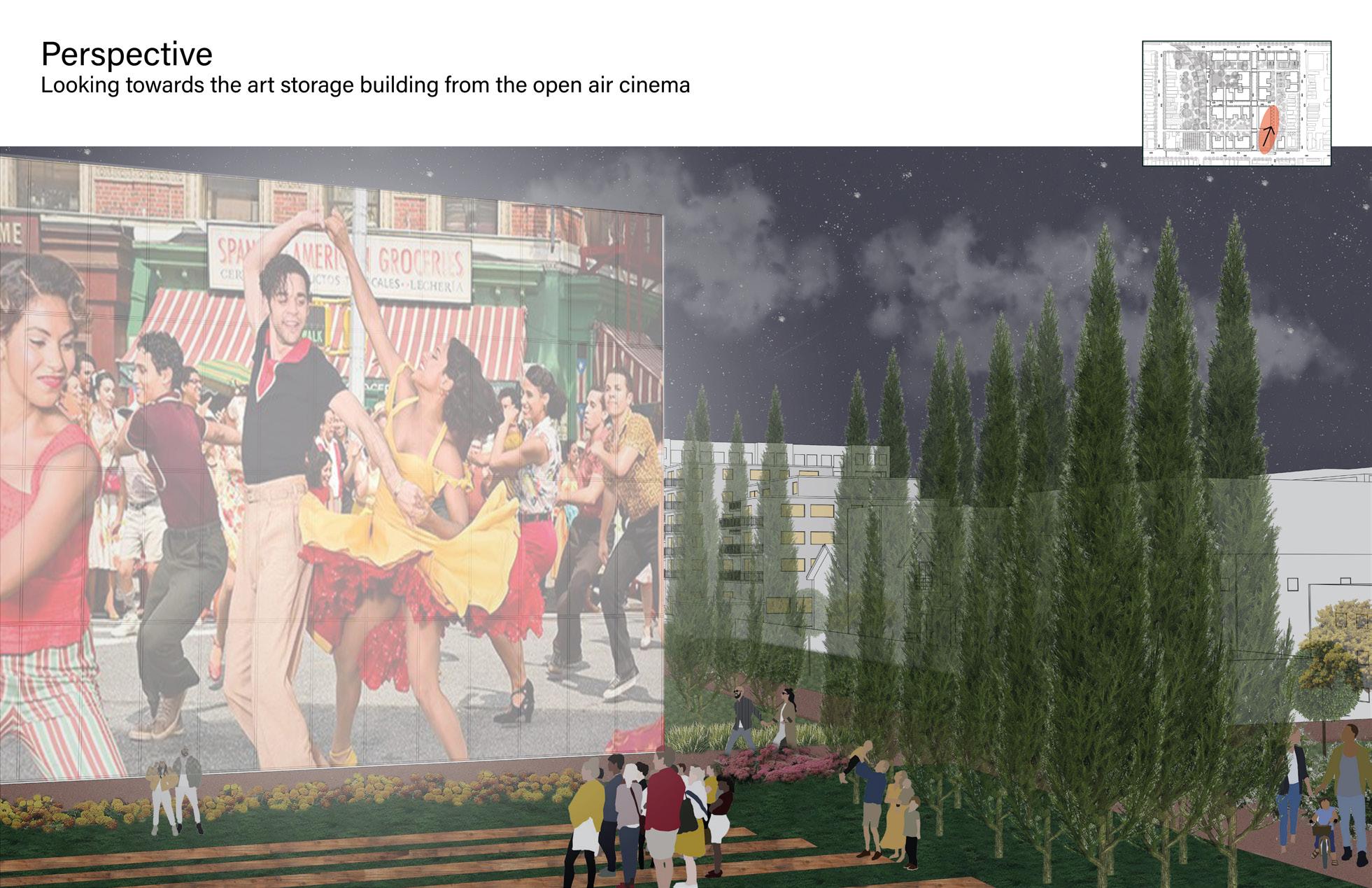 PERSPECTIVE | LOOKING TOWARDS THE ART STORAGE BUILDING FROM THE OPEN AIR CINEMA