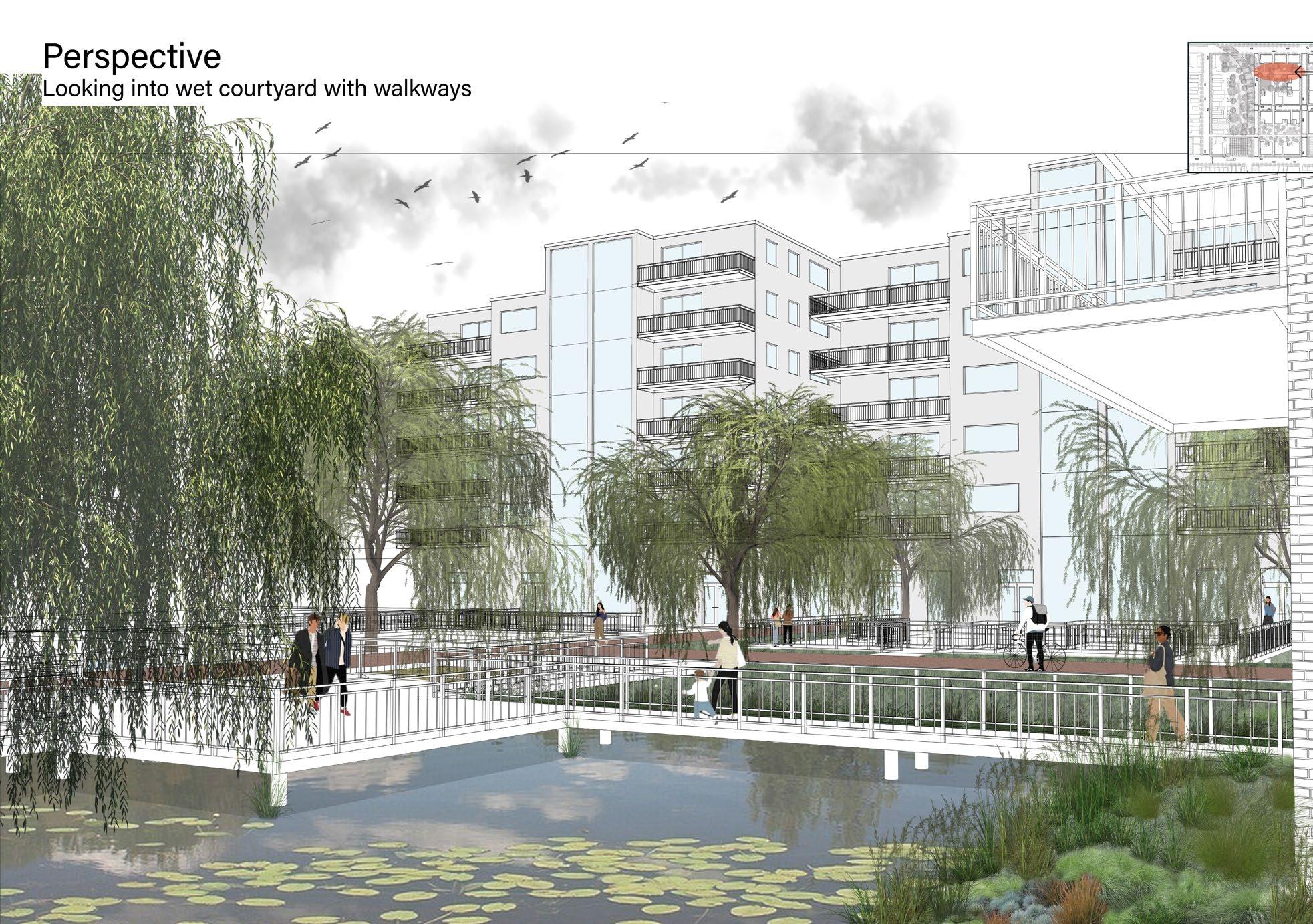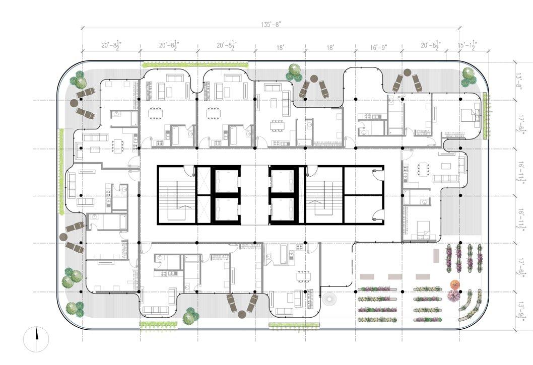 T he project envisions a holistic and engaging living experience for seniors amidst a pressing shortage of affordable housing. Acknowledging the pivotal role of home in shaping emotional well-being, the initiative challenges the norm of isolating seniors in suburban locations. Named ‘ENGAGED,’ the project adopts a hybrid model, integrating market-rate apartments with units designed specifically for seniors, complemented by a community center. The central strategic idea emphasizes active participation and connection.