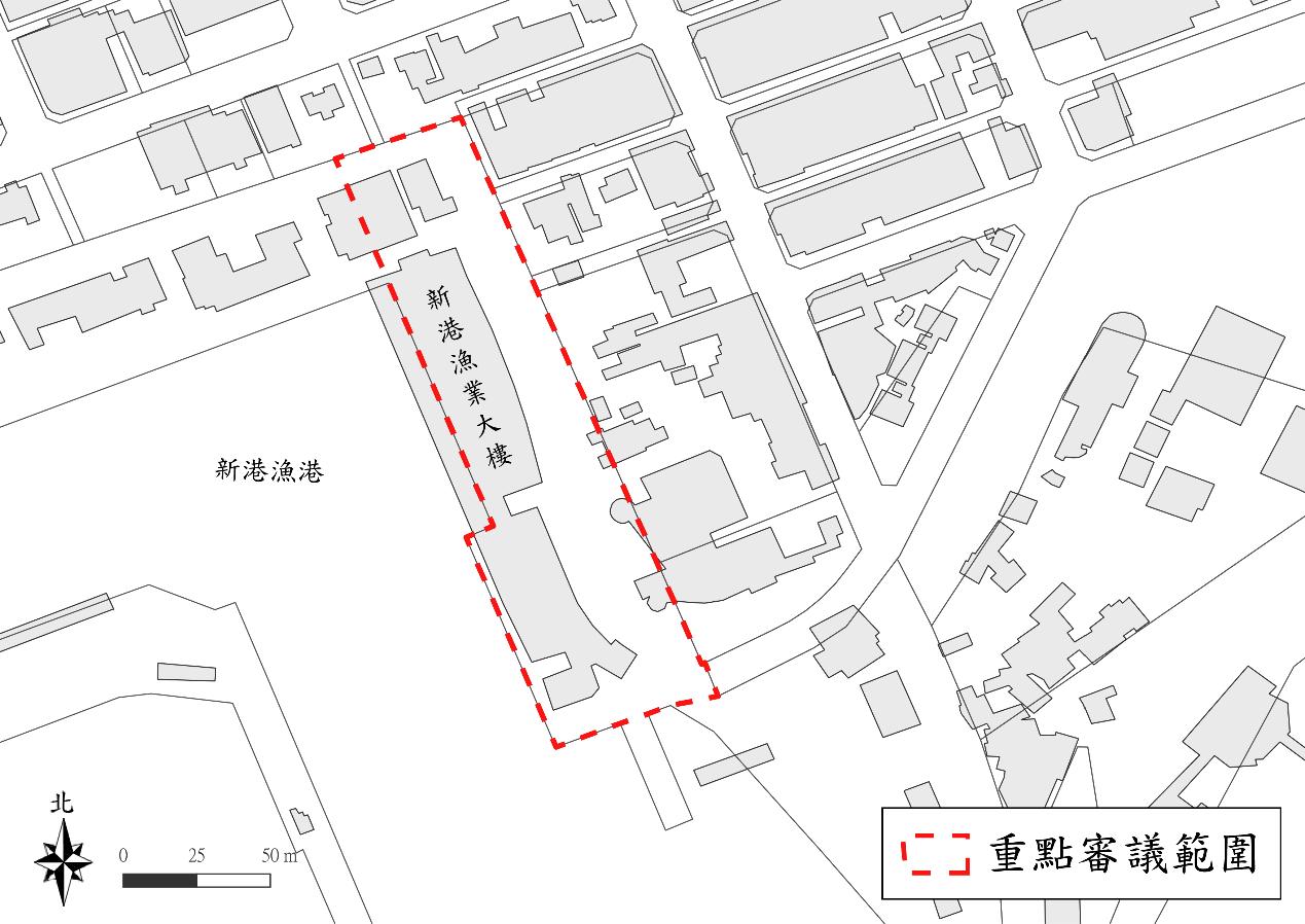 圖 六 6 新港教會周邊重點審議範圍示意圖...........................56 圖 六 7 新港漁港(新港漁業大樓)重點審議範圍示意圖...............57 圖 六 8 招牌位置與立面比例示意圖.................................61
