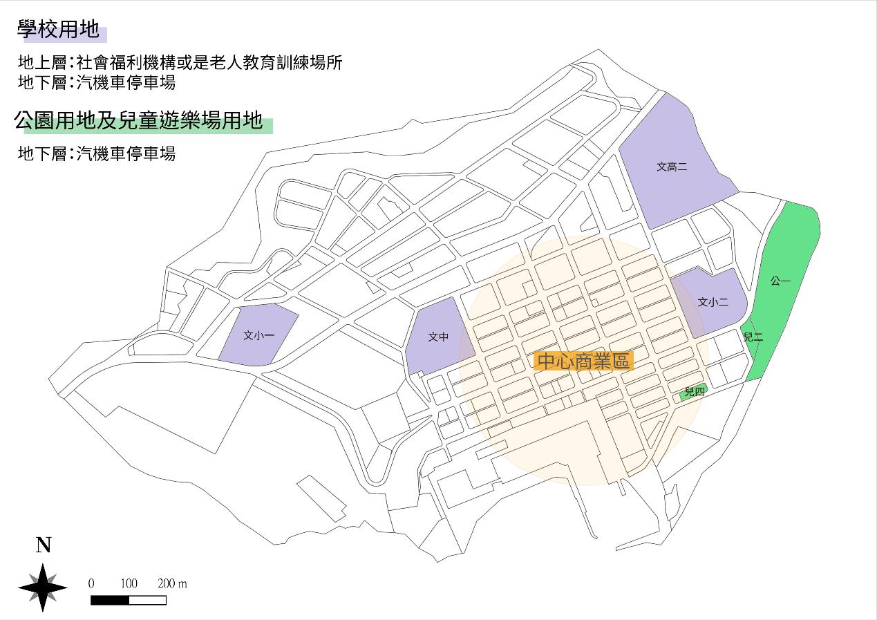 體育場用地、公園用地為學校及部分住宅區為道路用地) 案