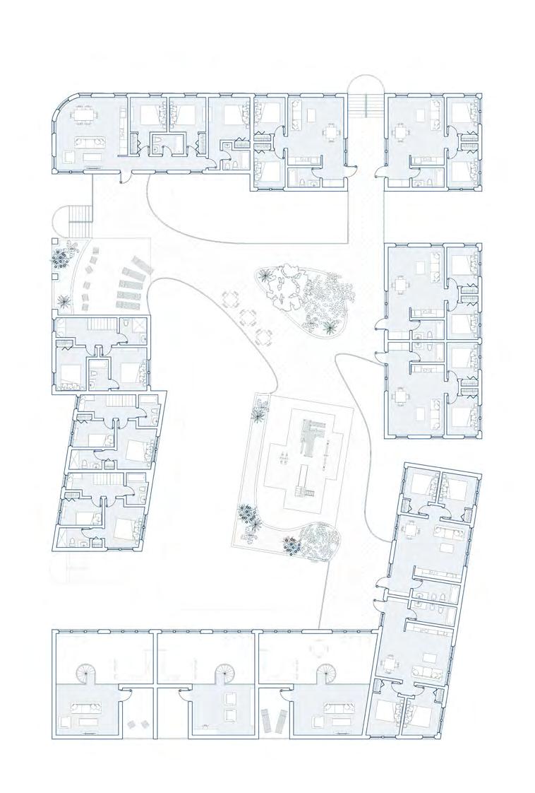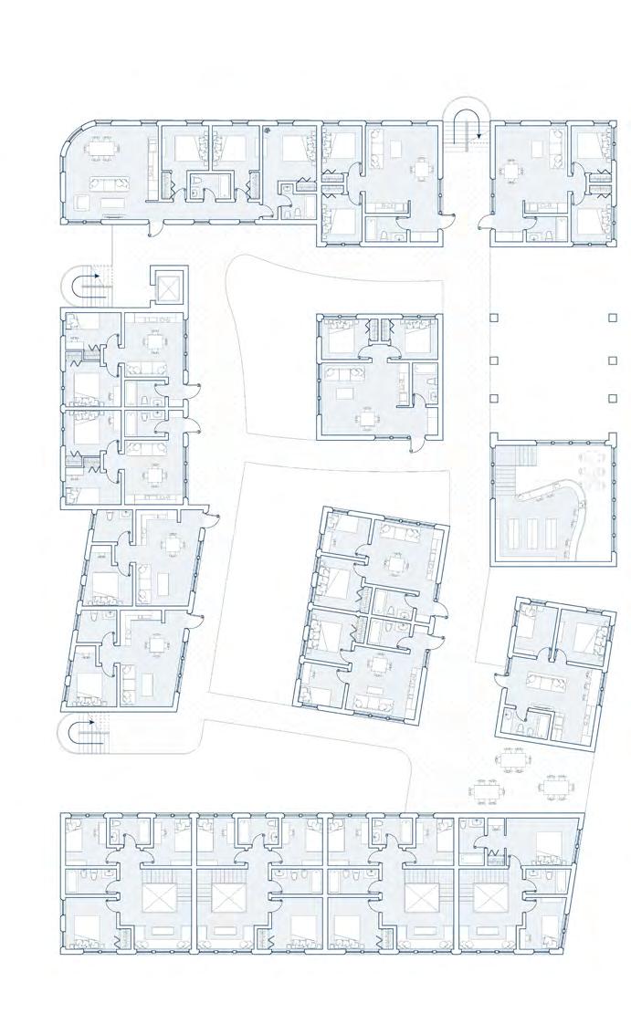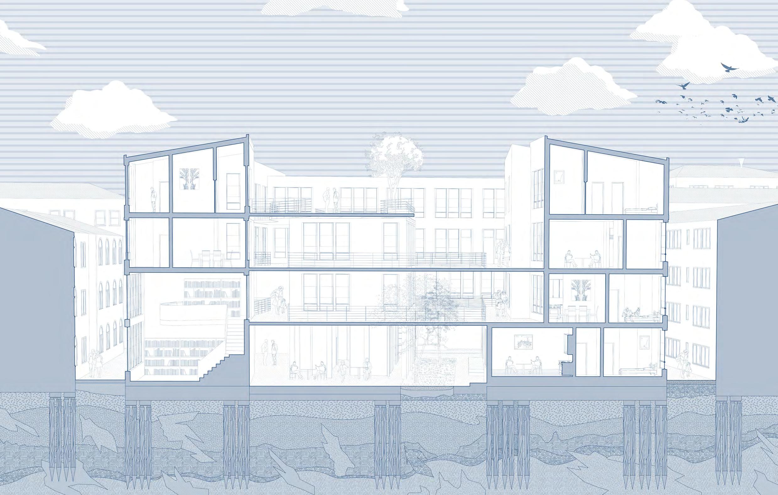 The Venice Apartment proposes a modern approach to designing new buildings in a historic city such as Venice. The exterior thrives to blend in with the existing contexts while the interior provides unique experiences for the tenants with curve walkways overlapping one another. Adressing sea-level rise is also a major factor in the design of the new apartment complex, resulting in raised platforms as well as more public programs on the ground level