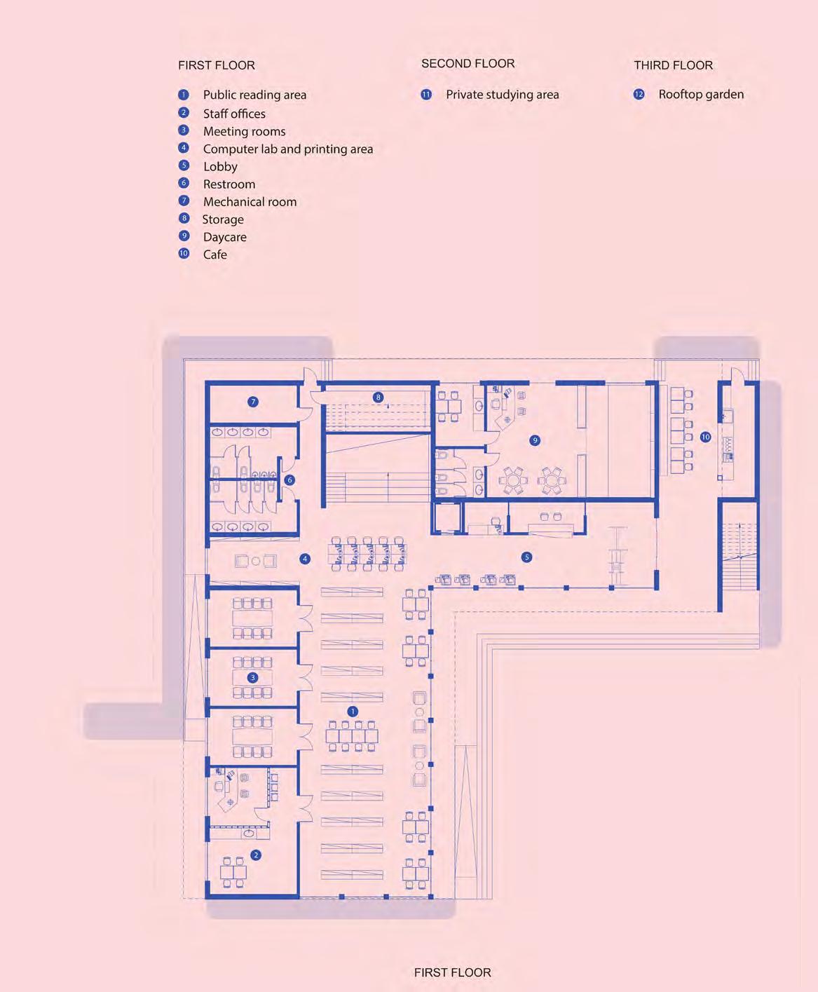 Library Plus+ is a project to design a public gathering space, consisting of a library and a daycare as its extended program for a neighborhood in Coral Gables. With connectivity in mind, I am reminded of the metrorail station that run across the Miami-Dade area. Each station bears the specific architecture style corresponses to the characteristics of the neighborhood it’s located in. Glassblocks and rough concrete are used mainly in the nearest station to the site, which influence the design of this project.