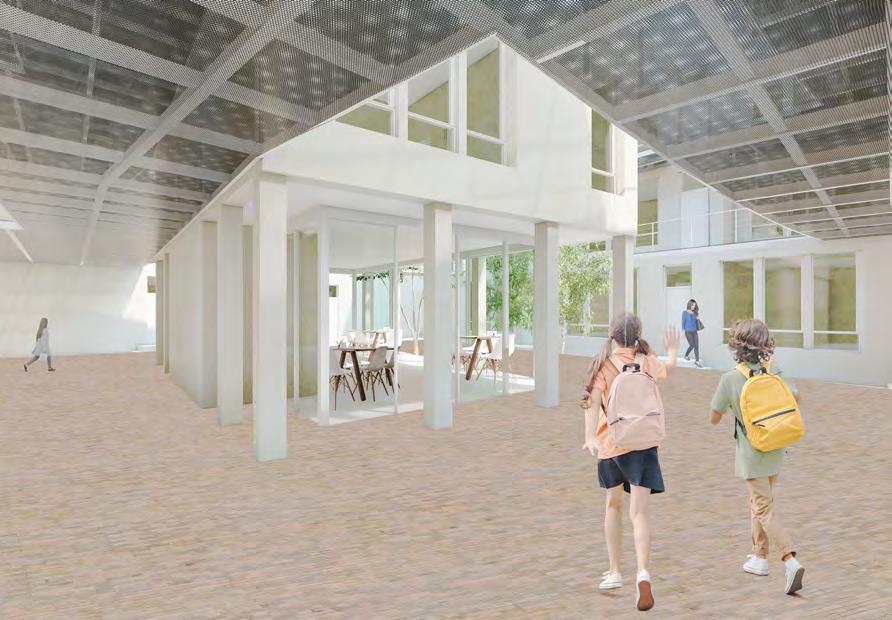 The North Miami Youth Center is designed to embrace the existing skate park and the Banyan tree that give the site its unique identity, while providing a gathering space for the community. The main goal is to extend the skate park into the rest of the site, and elevate the proposed program in consideration of rising sea level in the area. A ramp starting at the end of the skatepark follows by a concrete envelope providing protection for the floating main program core. Openings and shafts are strategically placed throughout the envelope, allowing air and light to pass through, as well as giving space and importance to the Banyan tree in the center of the site. Natural elements continue from the ground up and intergrate into the main program space. The youth center offers a wide variety of programs, including a basketball court in the main core, multiple open classrooms, and complementary programs such as a skate shop and a juice bar.