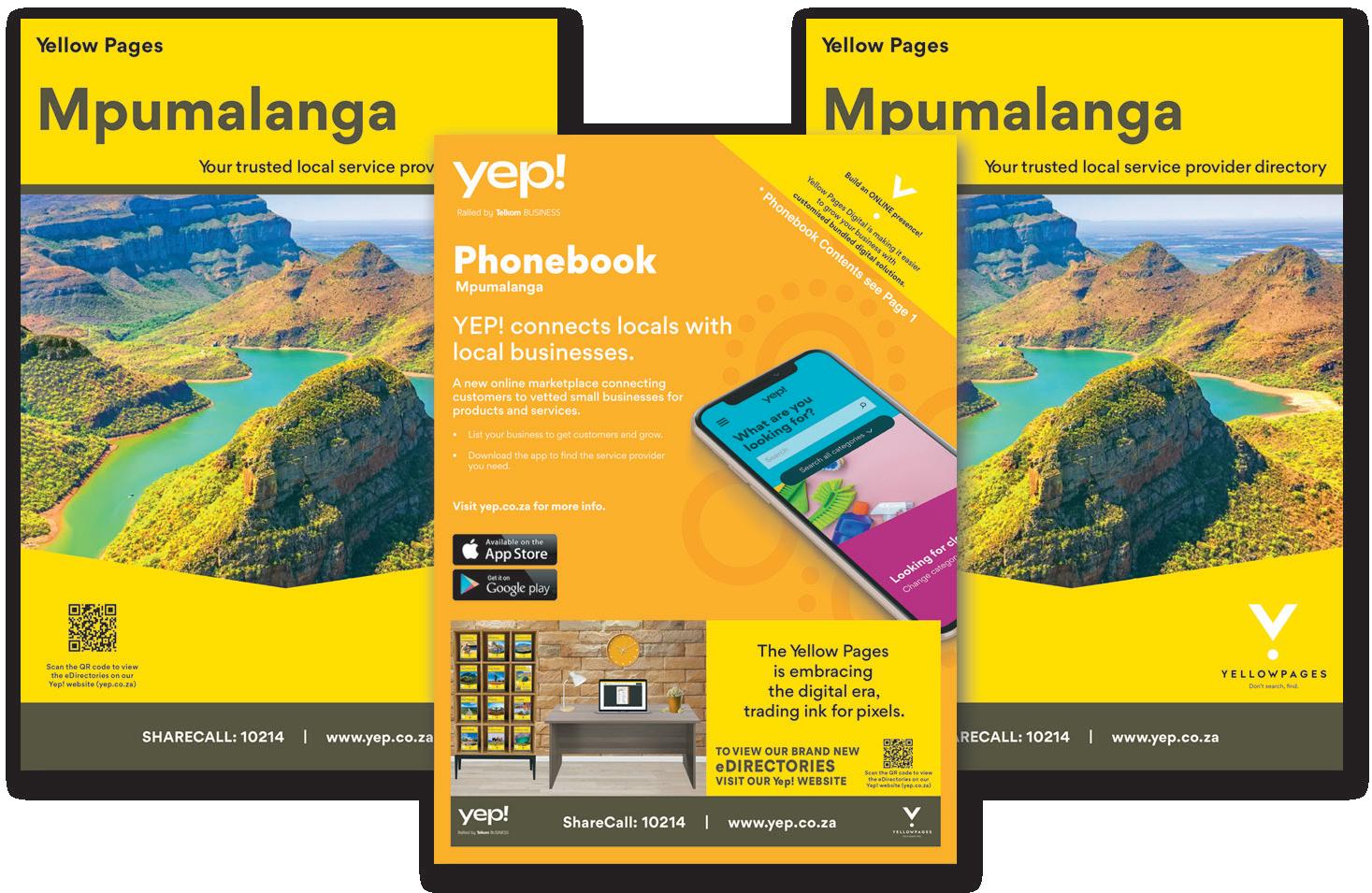 Yellow Pages are available for free, on our Yep! eBook domain www.whitepages.co.za