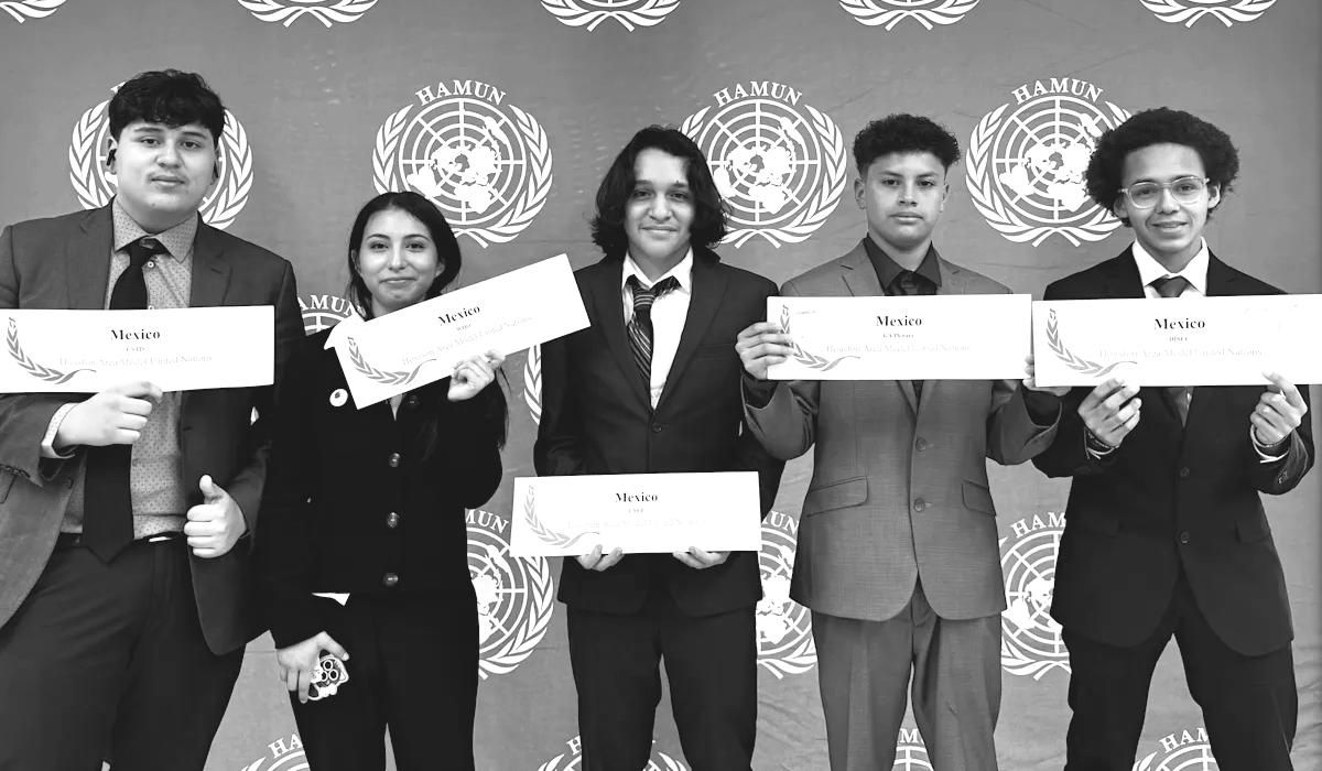 YES Prep Northwest Secondary students made their debut at the 50th Houston Area Model United Nations (HAMUN), joining over 1,300 participants from across the region. Representing countries like Mexico, the five-student delegation tackled real-world global issues, strengthened their public speaking and negotiation skills, and gained firsthand experience in international diplomacy. Supported by weekly club meetings and academic coursework, the students stepped out of their comfort zones and into leadership roles— marking a milestone for YES Prep’s commitment to expanding enriching, college-ready experiences beyond the classroom.