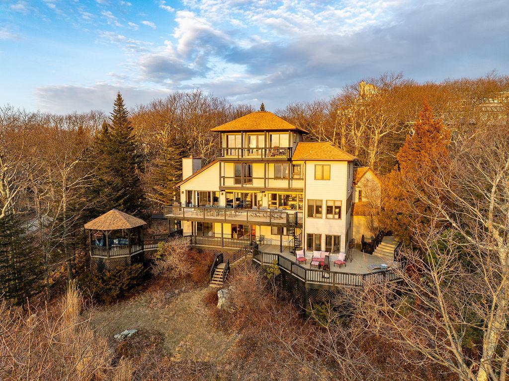 Spread over four towering stories, this Blue Ridge Mountain home is a destination itself offering nearly 5,000 square feet of living space and unparalleled western views that provide the backdrop for some of the most stunning sunsets in the Blue Ridge Mountains. Enjoy the outdoors on several floors of expansive decks perched above a beautifully landscaped near acre lot or relax in the luxurious and private spa tucked within majestic boulders. Significant improvements were made by the current owner, most notably a kitchen expansion to the dining area and gathering rooms. The vaulted living area with a stunning soapstone fireplace and intimate sunny lounge space anchor each end of the house The main floor also has a half bath, vaulted bedroom suite with an en suite and laundry The primary bedroom suite is spread across the entire next level and is home to 2 separate en suites and double walk-in closets Take the stairs up to the 4th floor observation floor, which is the perfect spot for an office or den where you can take in the views for miles As if that isn’t enough, the lower level has 3 bedrooms, two of which have en suites, another bathroom, exercise room, yoga space, full-size sauna, and garage. You may never want to leave!