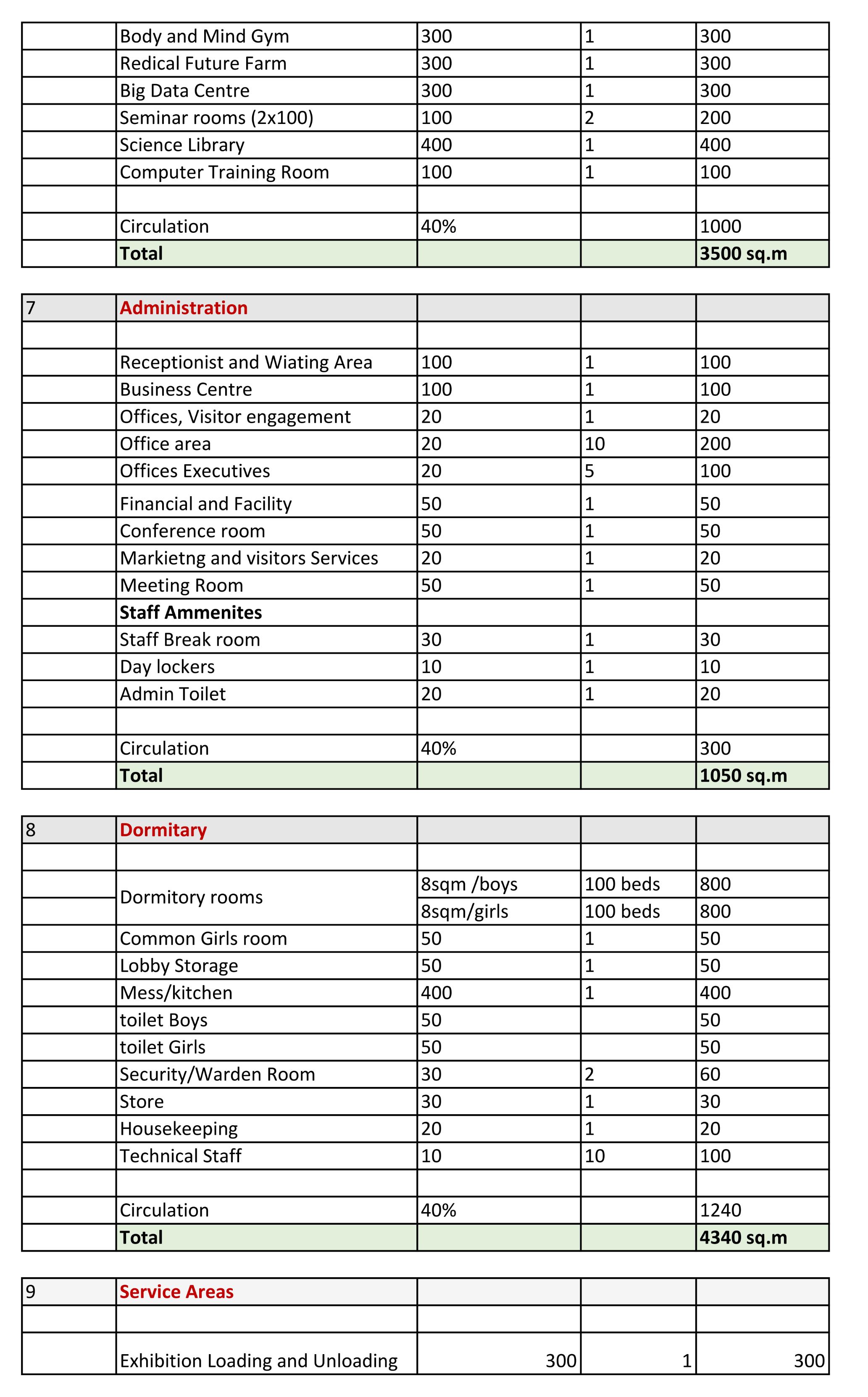 2.3 Area Requirement
